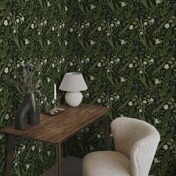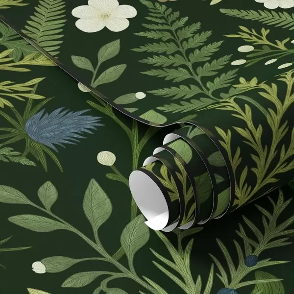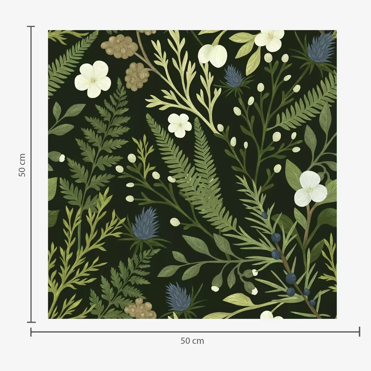 Tapéta Erdőben termő gyógynövények és bogyós gyümölcsök sötétzöld háttér előtt Nr. a00621v2