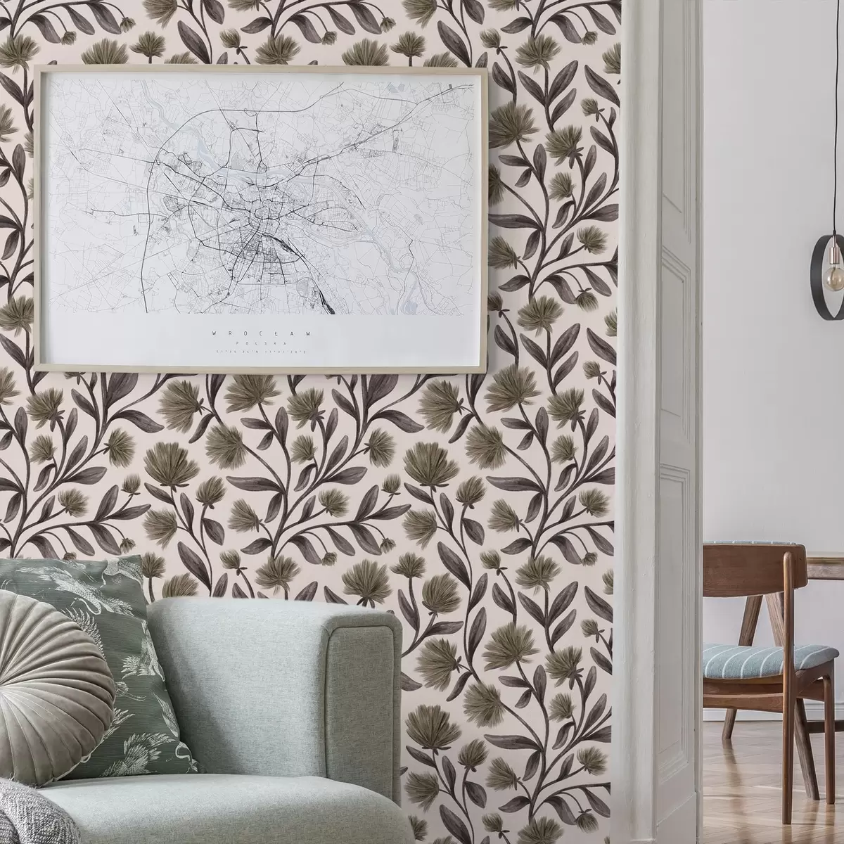 Tapéta Szürke-olajzöld árnyalatú vadvirágok krém színű háttérrel Nr. a00623v1