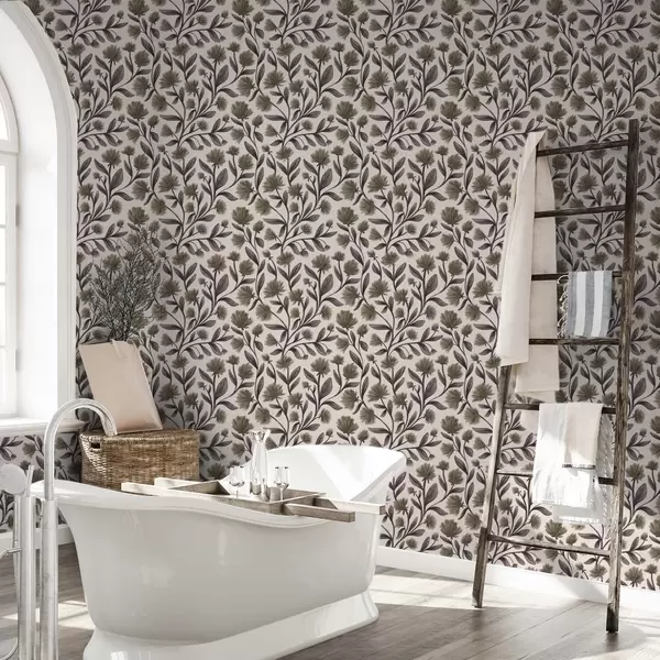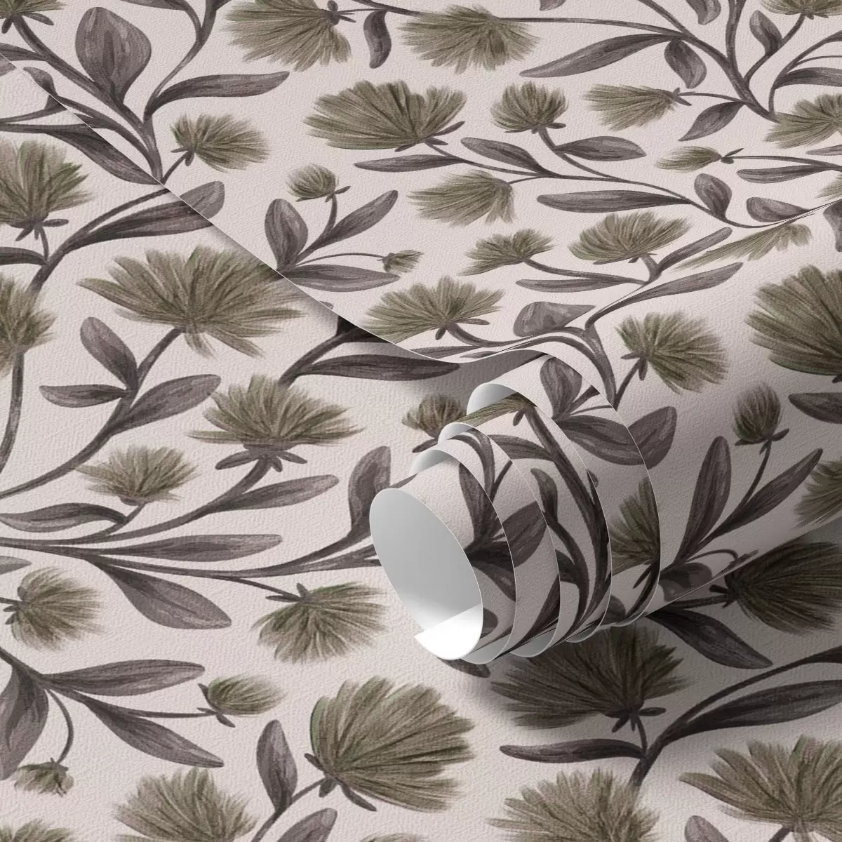 Tapéta Szürke-olajzöld árnyalatú vadvirágok krém színű háttérrel Nr. a00623v1