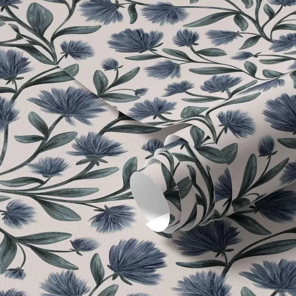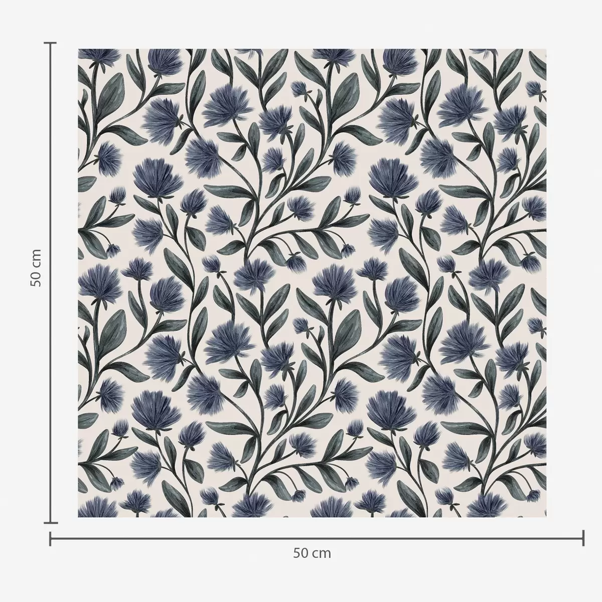 Tapéta Kék-zöld színű vadvirágok krém színű háttérrel Nr. a00623v2