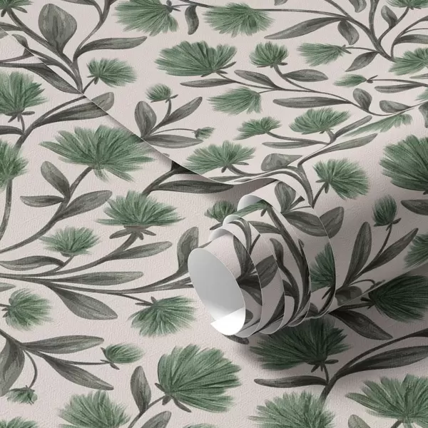 Tapéta Vadvirágok zöld színpalettán krém színű háttér előtt Nr. a00623v3