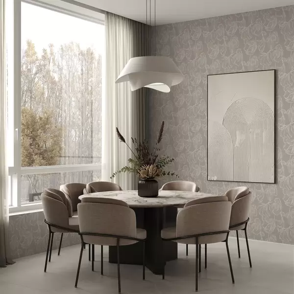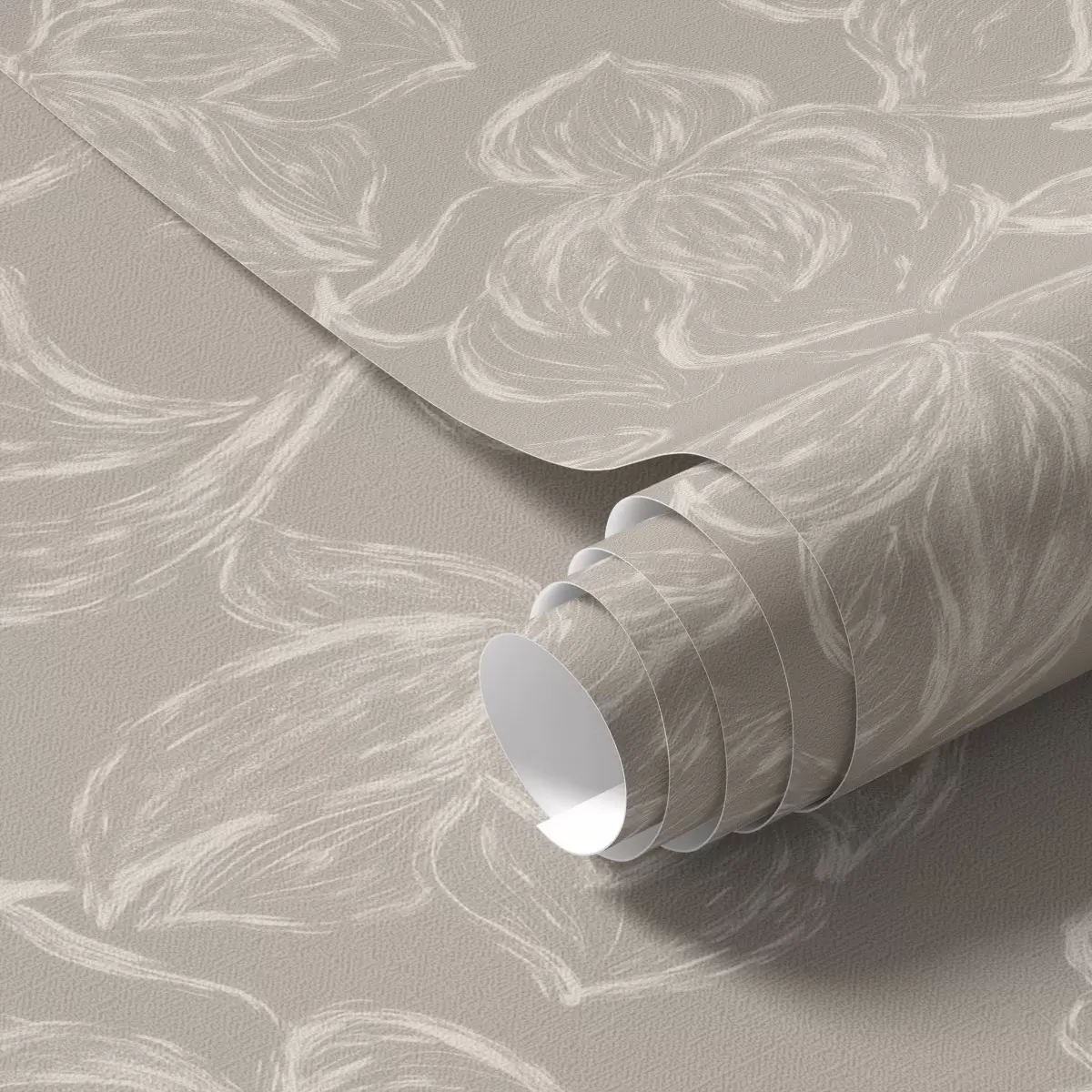Tapéta Krém színű kontúros virágok meleg szürkésbarna háttérrel Nr. a00625v2