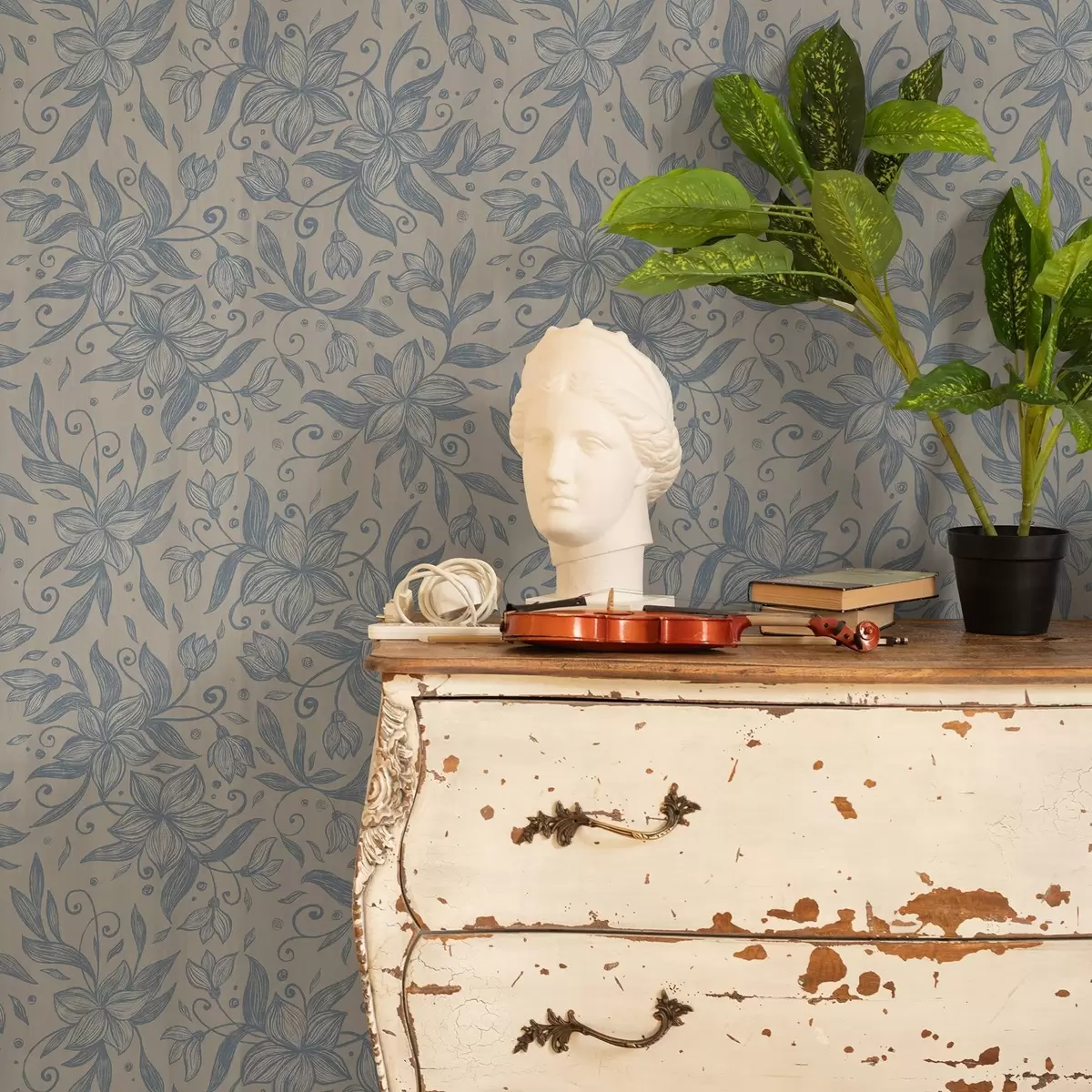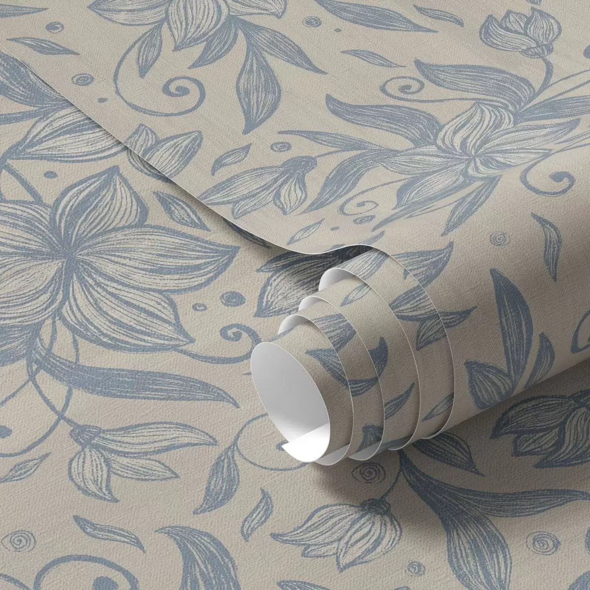 Tapéta Kék lineáris virágminta meleg bézs alapon Nr. a00630v2