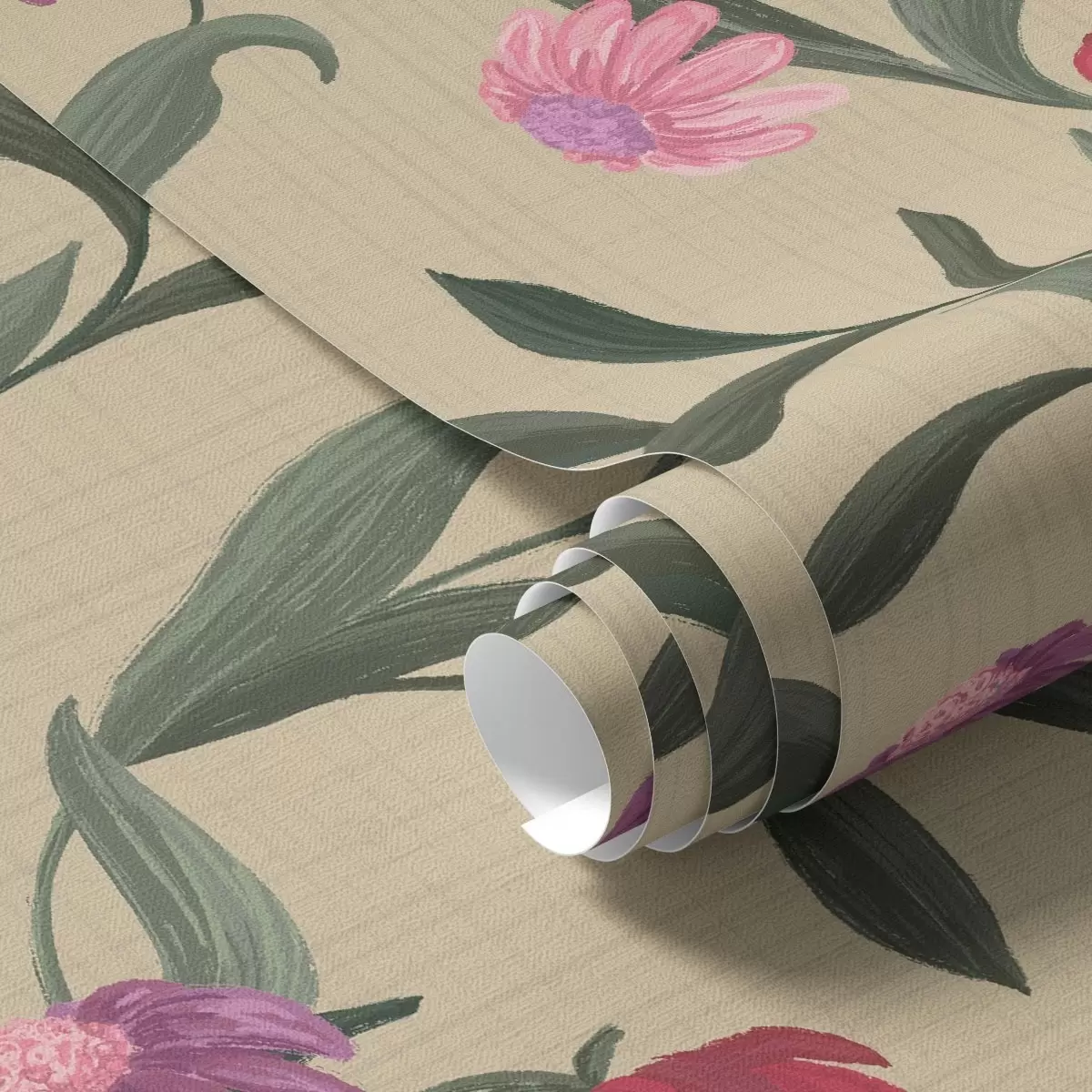 Tapéta Rózsaszín-vörös virágok bézs háttérrel, kézzel rajzolt textúra Nr. a00631