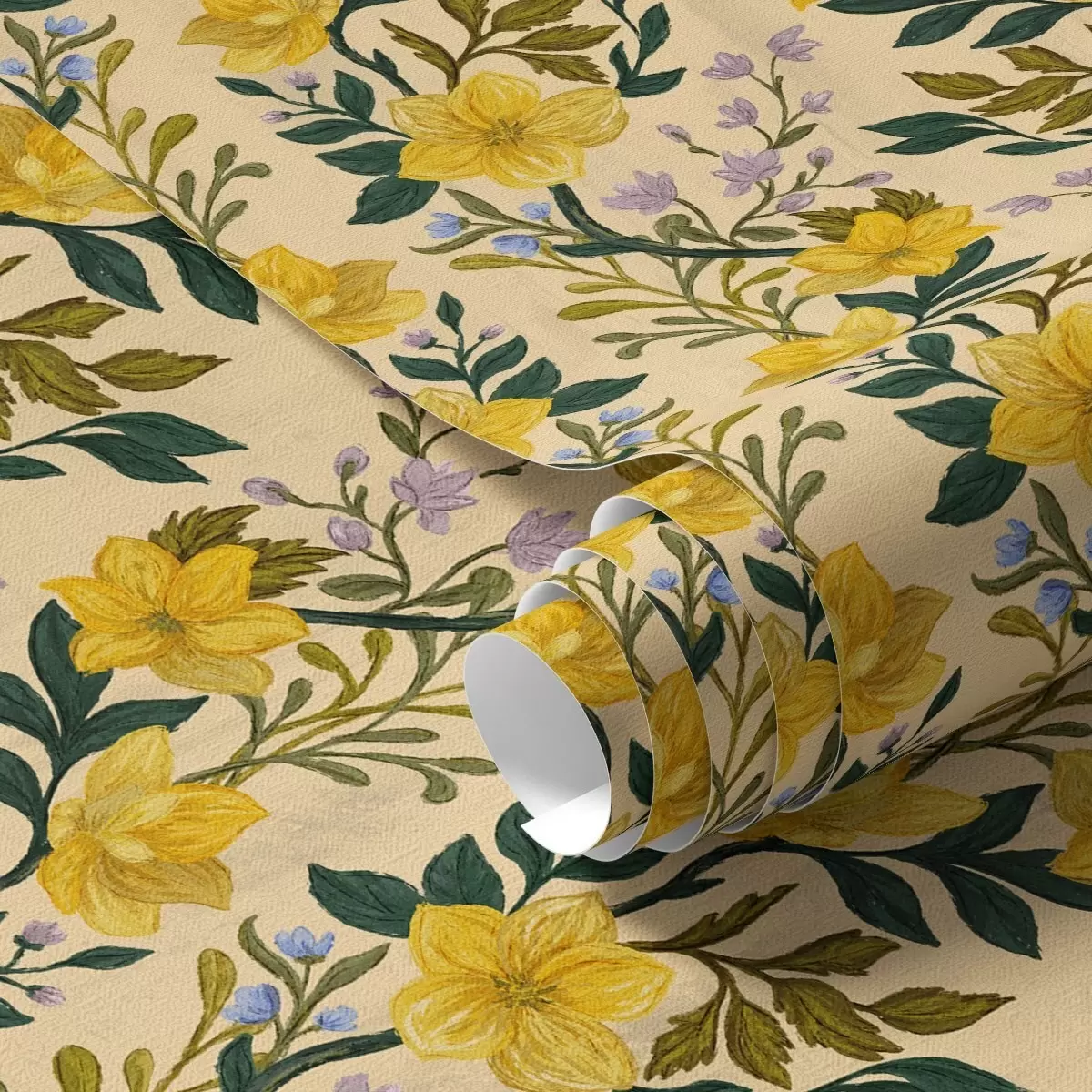 Tapéta Sárga virágok függőleges koszorúkban krém színű háttér előtt Nr. a00632