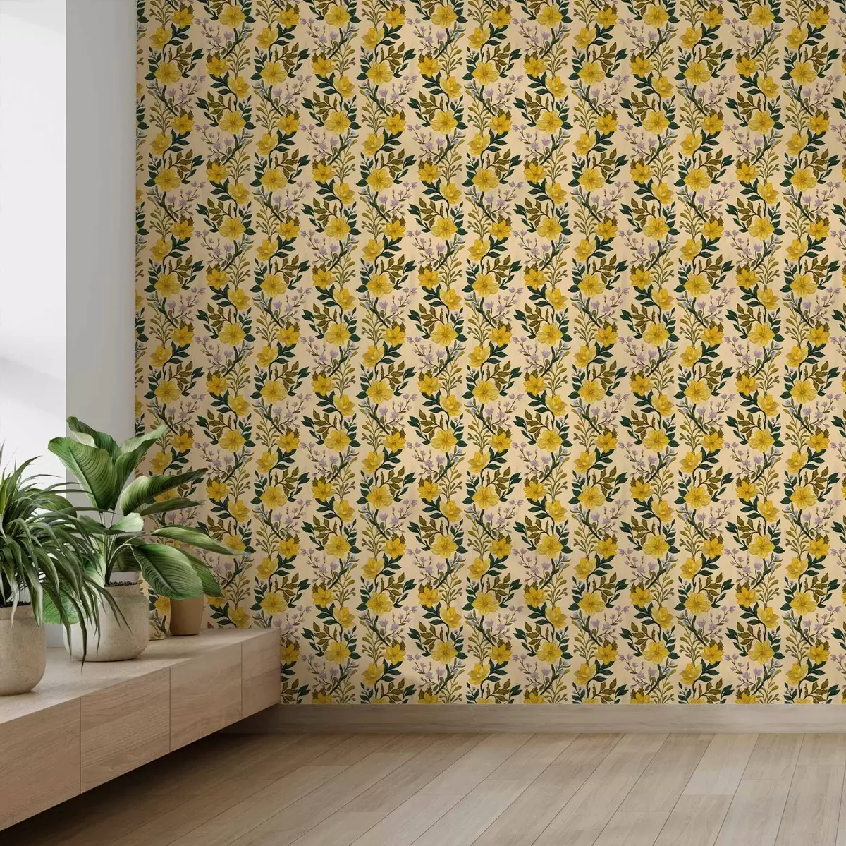 Tapéta Sárga virágok függőleges koszorúkban krém színű háttér előtt Nr. a00632