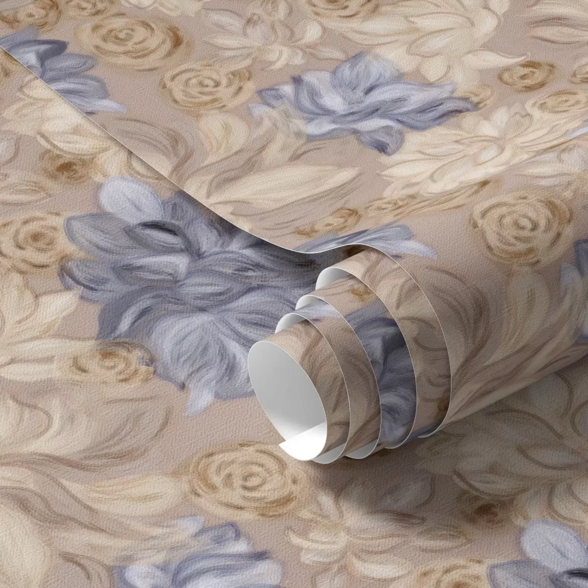 Tapéta Pompás krém és kék virágok pasztell színpalettán Nr. a00634