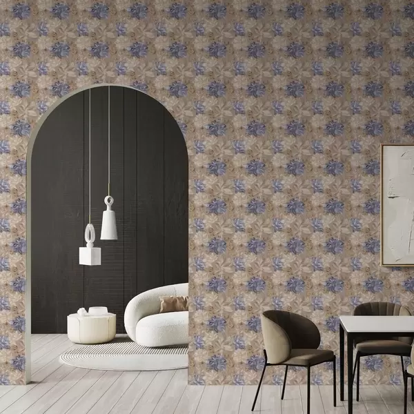 Tapéta Pompás krém és kék virágok pasztell színpalettán Nr. a00634