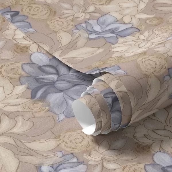 Tapéta Krém és kék virágok meleg bézs háttérrel Nr. a00634v1