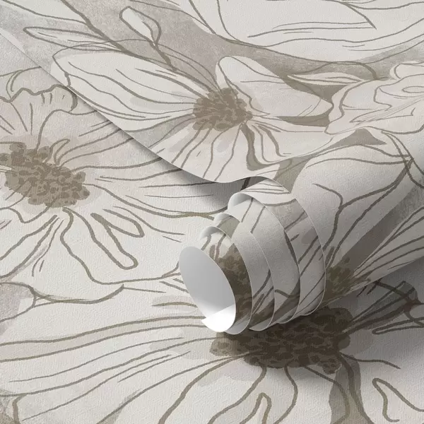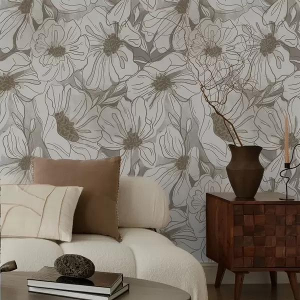Tapéta Lineáris virágok monokróm bézs-szürke színpalettában Nr. a00636