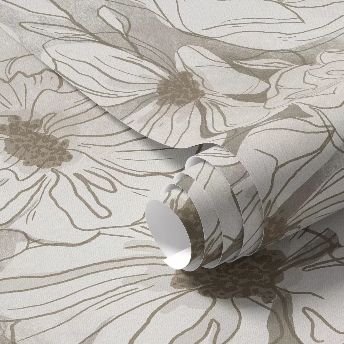 Tapéta Lineáris virágok monokróm bézs-szürke színpalettában Nr. a00636