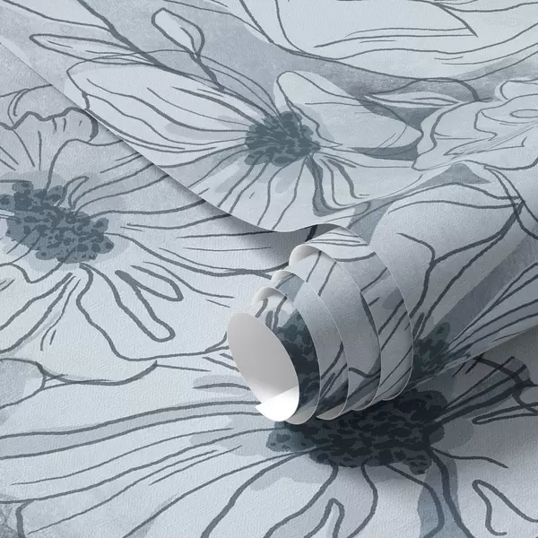 Tapéta Lineáris virágok hűvös szürke-kék színpalettában Nr. a00636v2