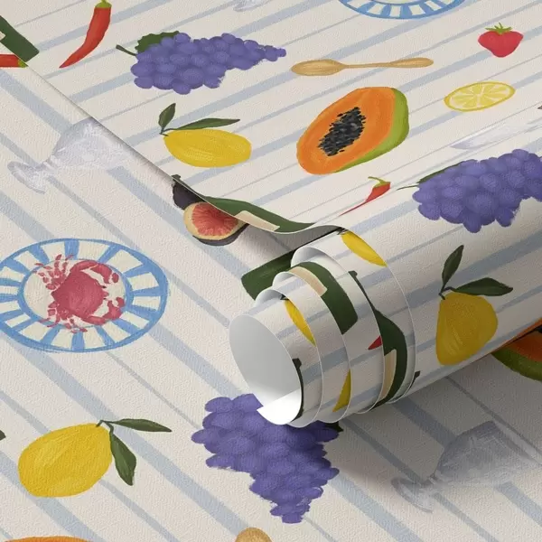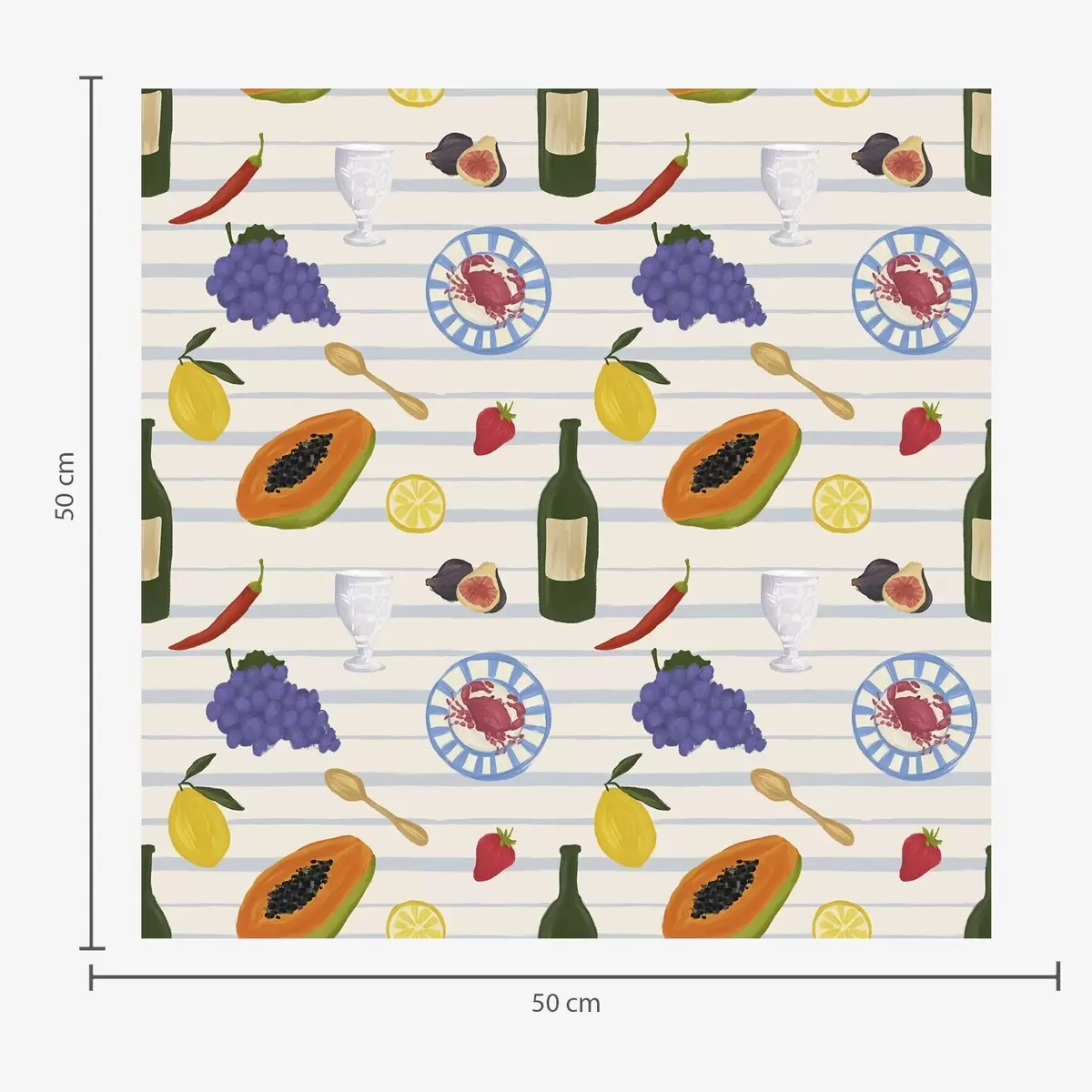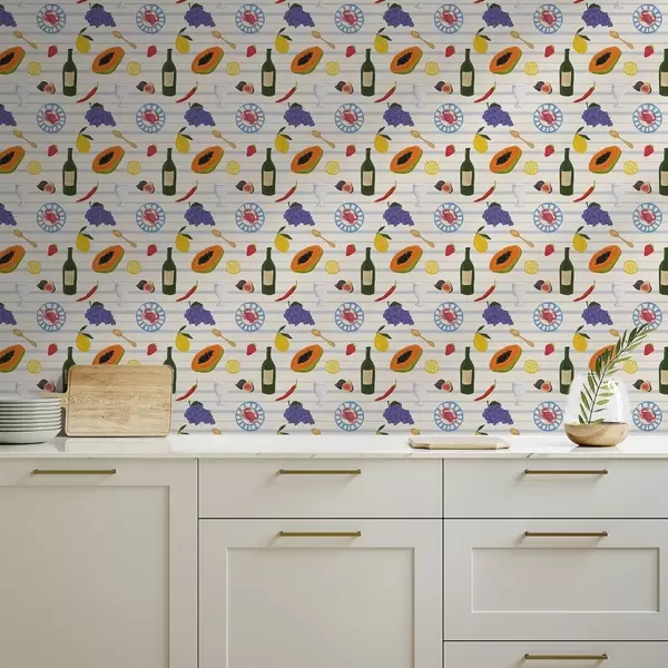 Tapéta Konyhai nyomat gyümölcsökkel, poharakkal és tányérokkal Nr. a00638