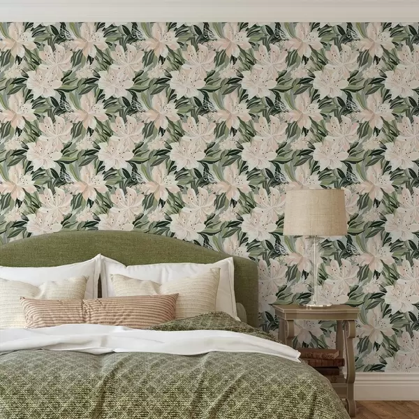 Tapéta Nagy krémes virágok világoszöld háttérrel Nr. a00646