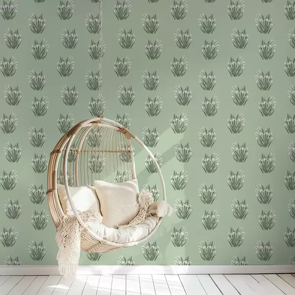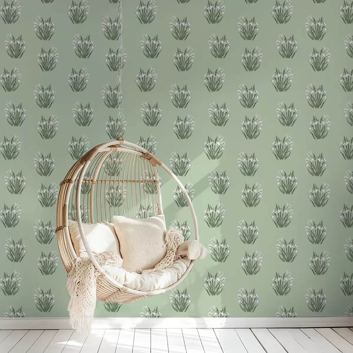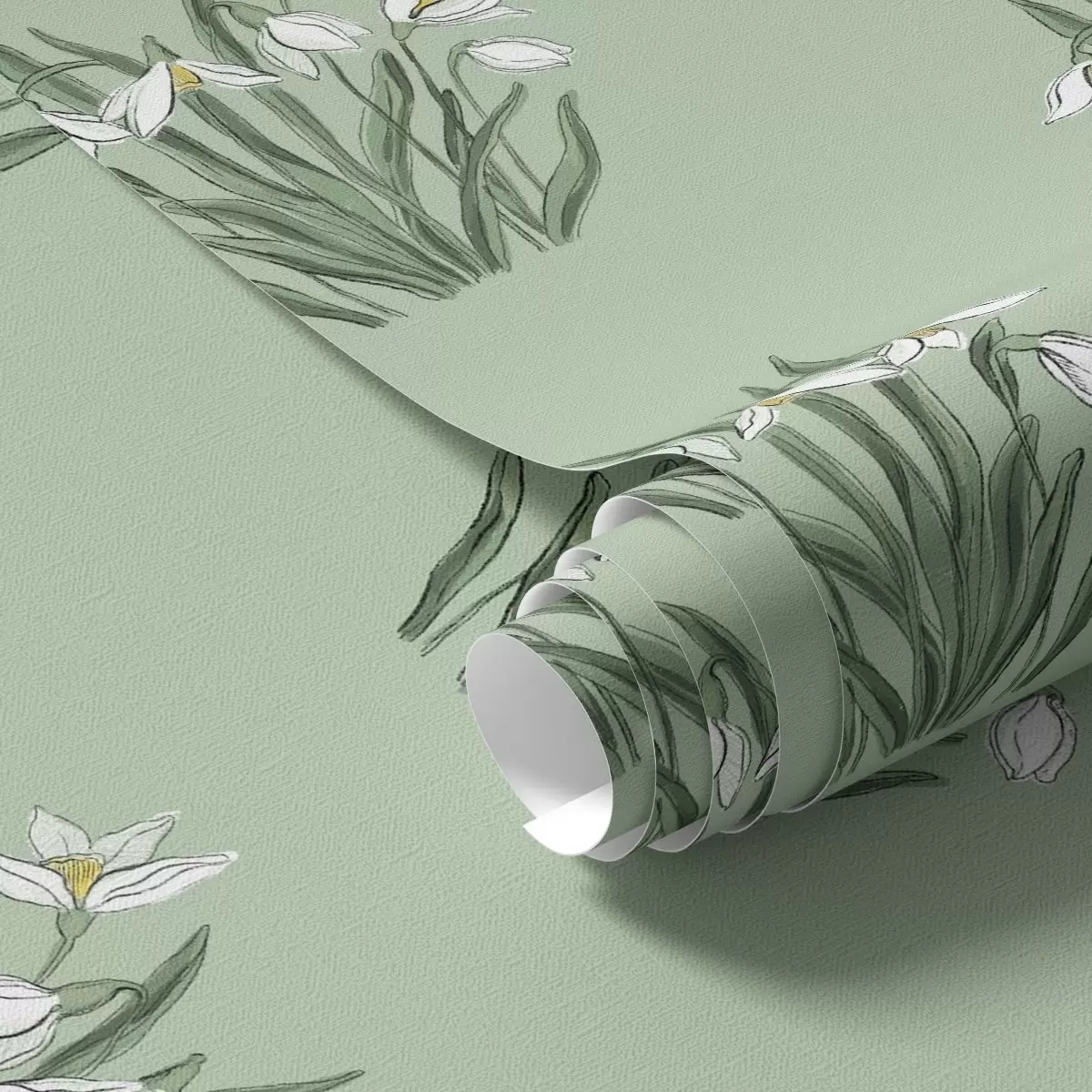 Tapéta Hóvirágok zöld levelekkel, lágy zöld háttérrel Nr. a00651v4