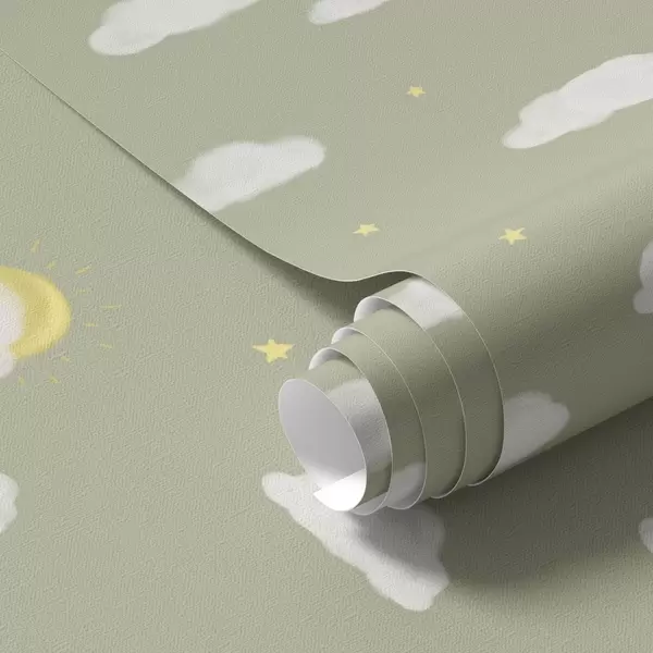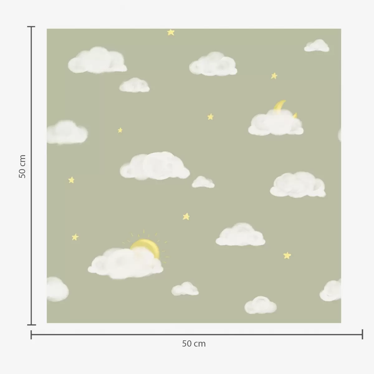 Tapéta Puha felhők, csillagok és nap zöldesszürke háttér előtt Nr. a00652v1