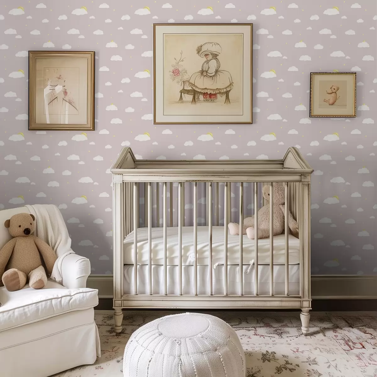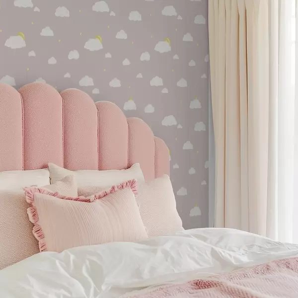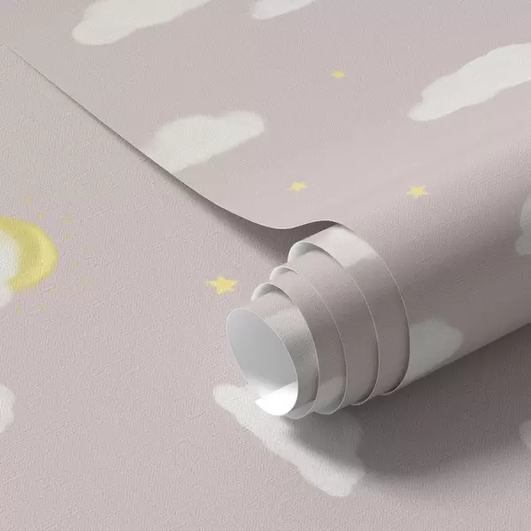 Tapéta Puha felhők, csillagok és nap rózsaszínű szürke háttér előtt Nr. a00652v2