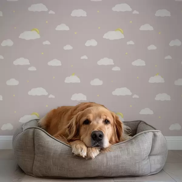 Tapéta Puha felhők, csillagok és nap rózsaszínű szürke háttér előtt Nr. a00652v2