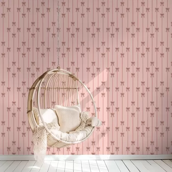 Tapéta Függőleges szalagok masnival, korallrózsaszín háttérrel Nr. a00653v3