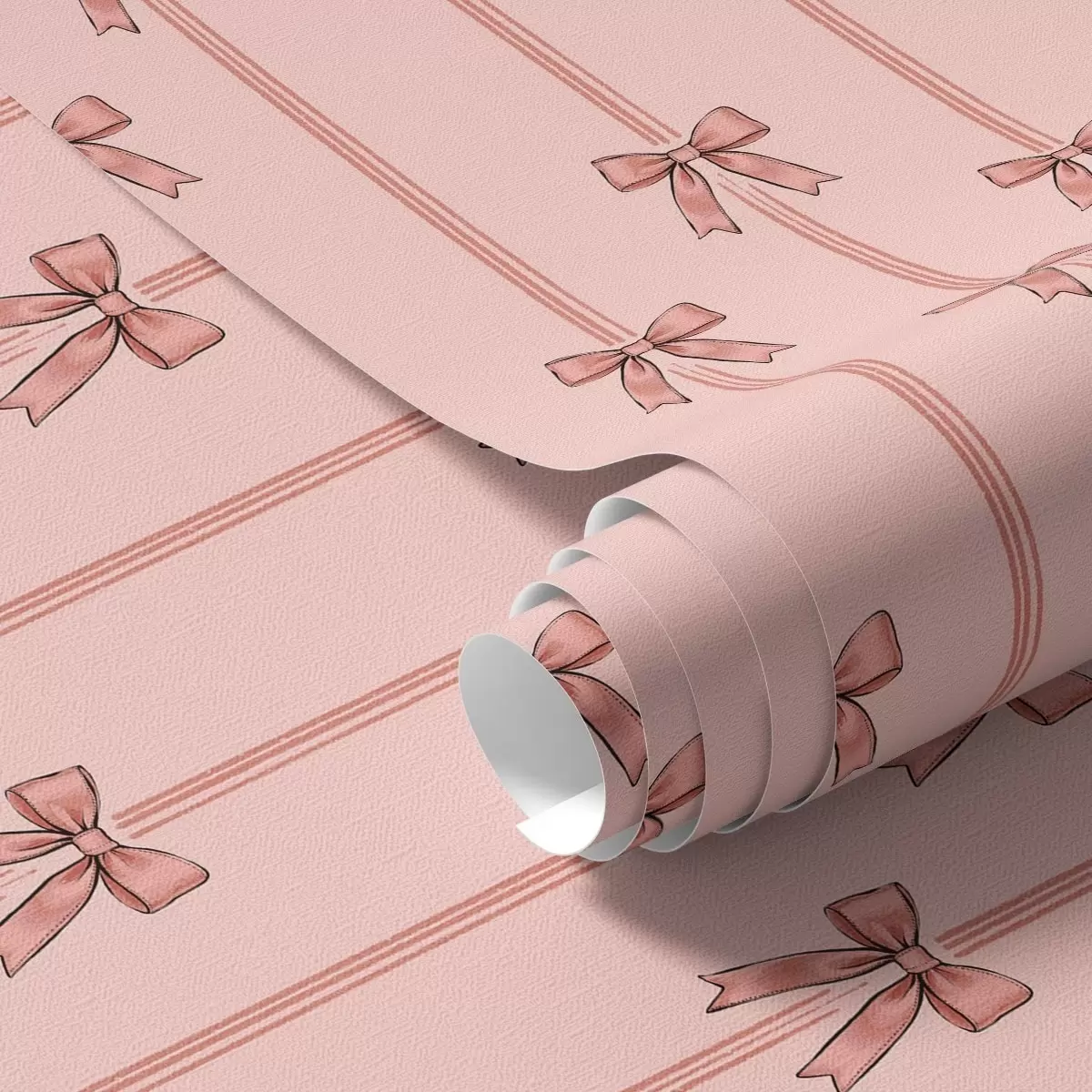 Tapéta Függőleges szalagok masnival, korallrózsaszín háttérrel Nr. a00653v3