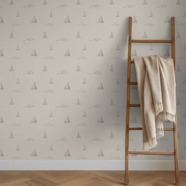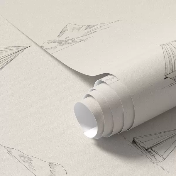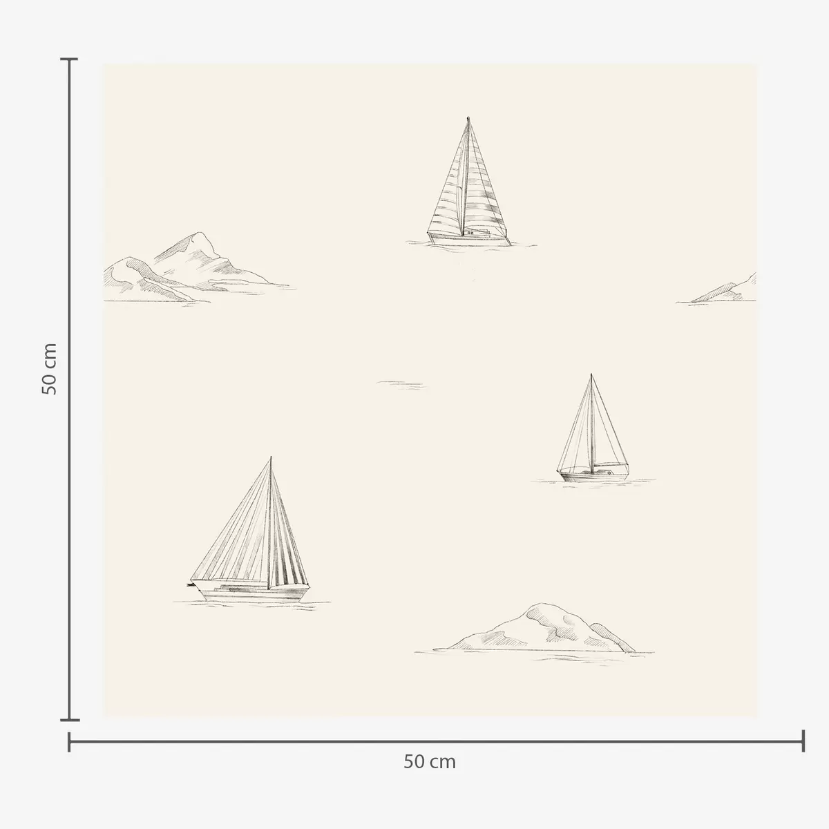 Tapéta Vázlatos jachtok és szigetek, meleg krém színű háttér Nr. a00654v1