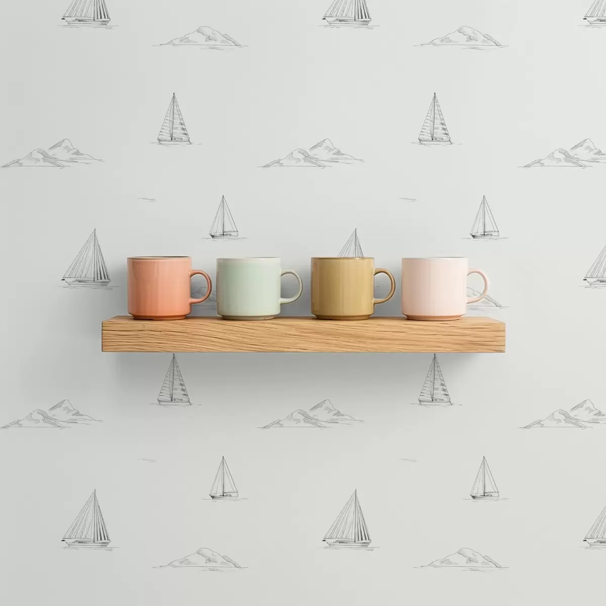 Tapéta Vázlatos jachtok és szigetek, világos háttér Nr. a00654v2
