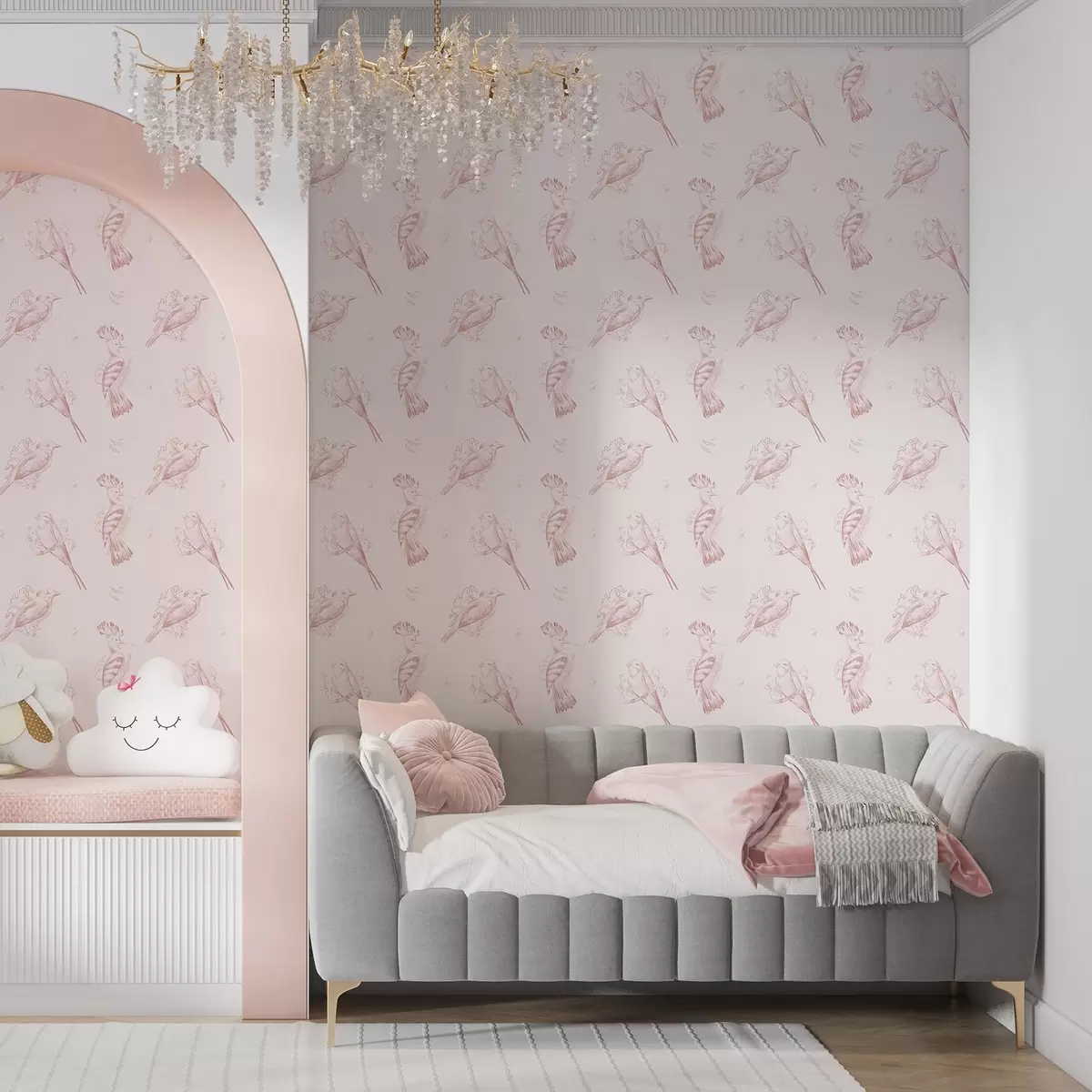 Tapéta Madár toile: madárvázlatok, halványrózsaszín háttér Nr. a00656
