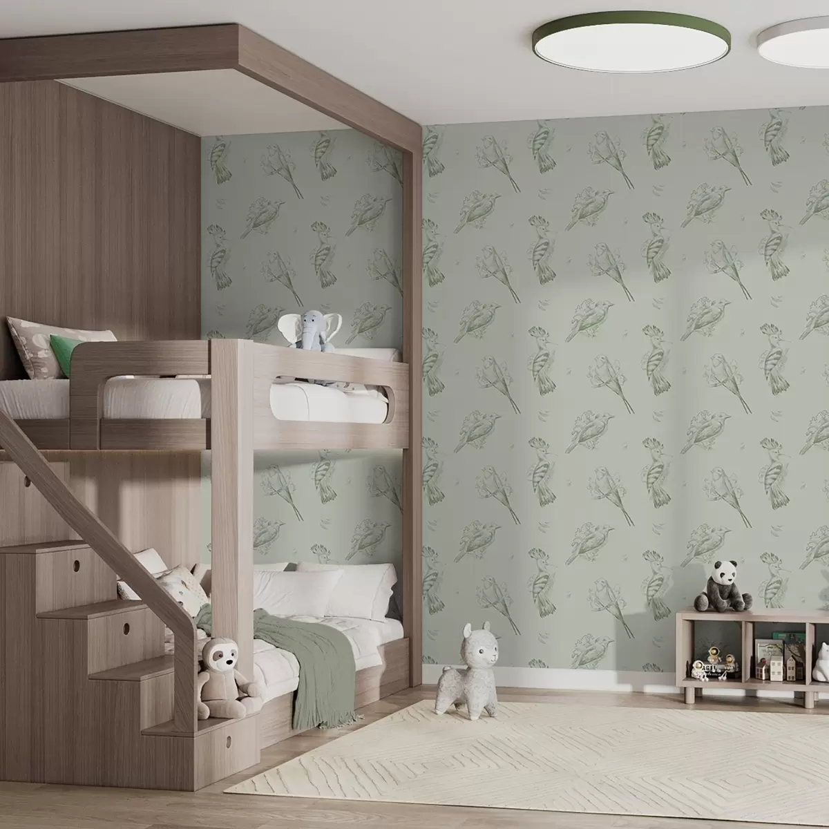Tapéta Madártoile: madarak vázlatai szürkés-zöld háttér előtt Nr. a00656v1
