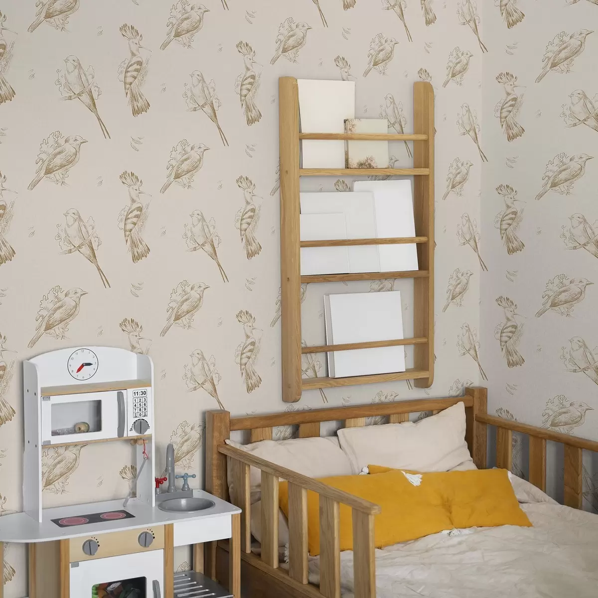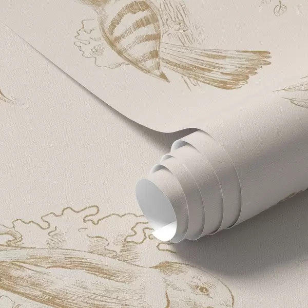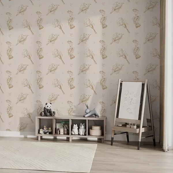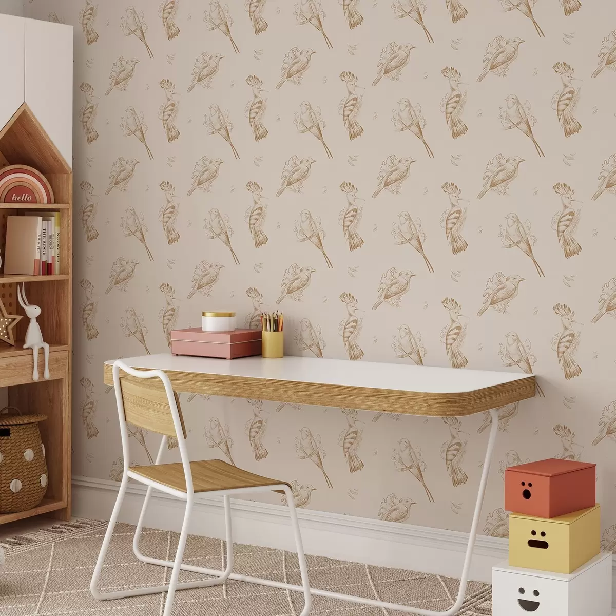 Tapéta Madártoile: madarak vázlatai meleg bézs színű alapon Nr. a00656v3