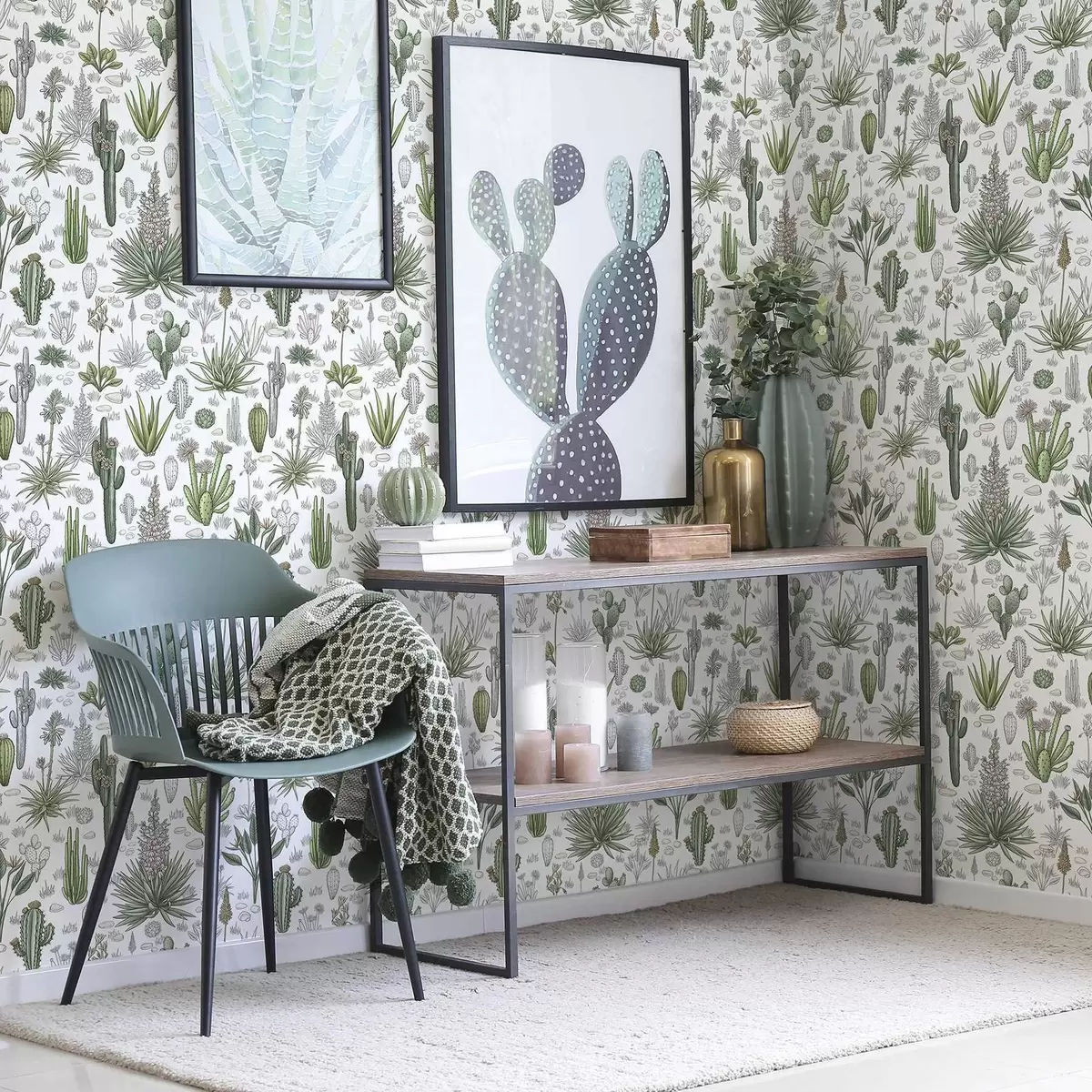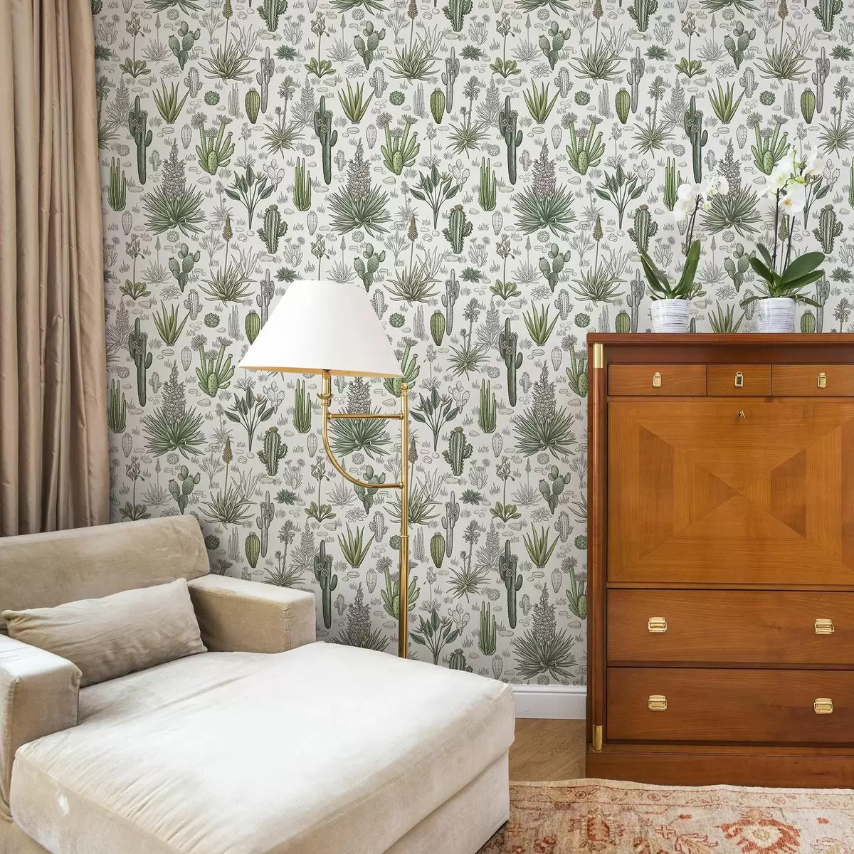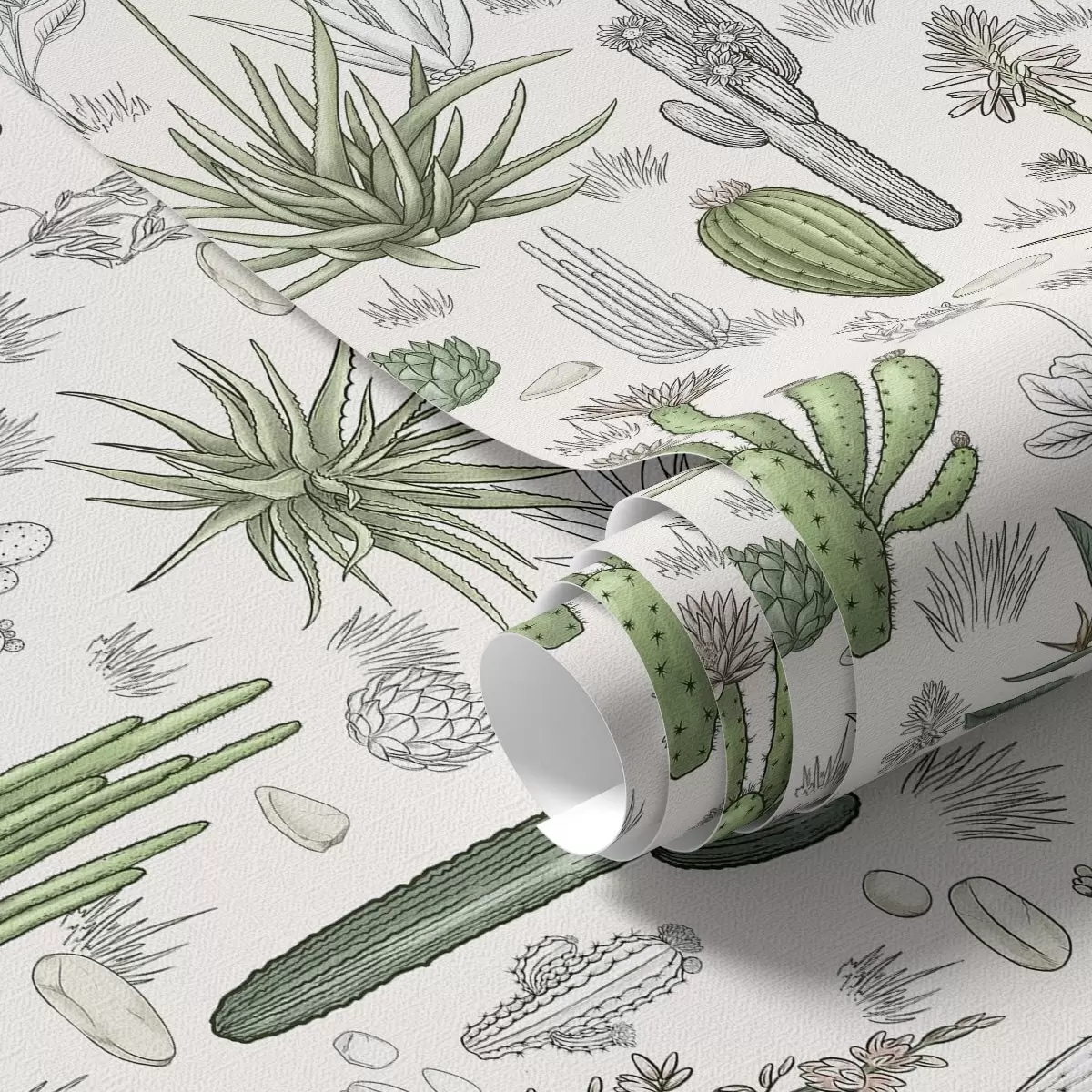 Tapéta Kaktuszok és pozsgások világos háttér előtt, lineáris stílusban Nr. a00666v1