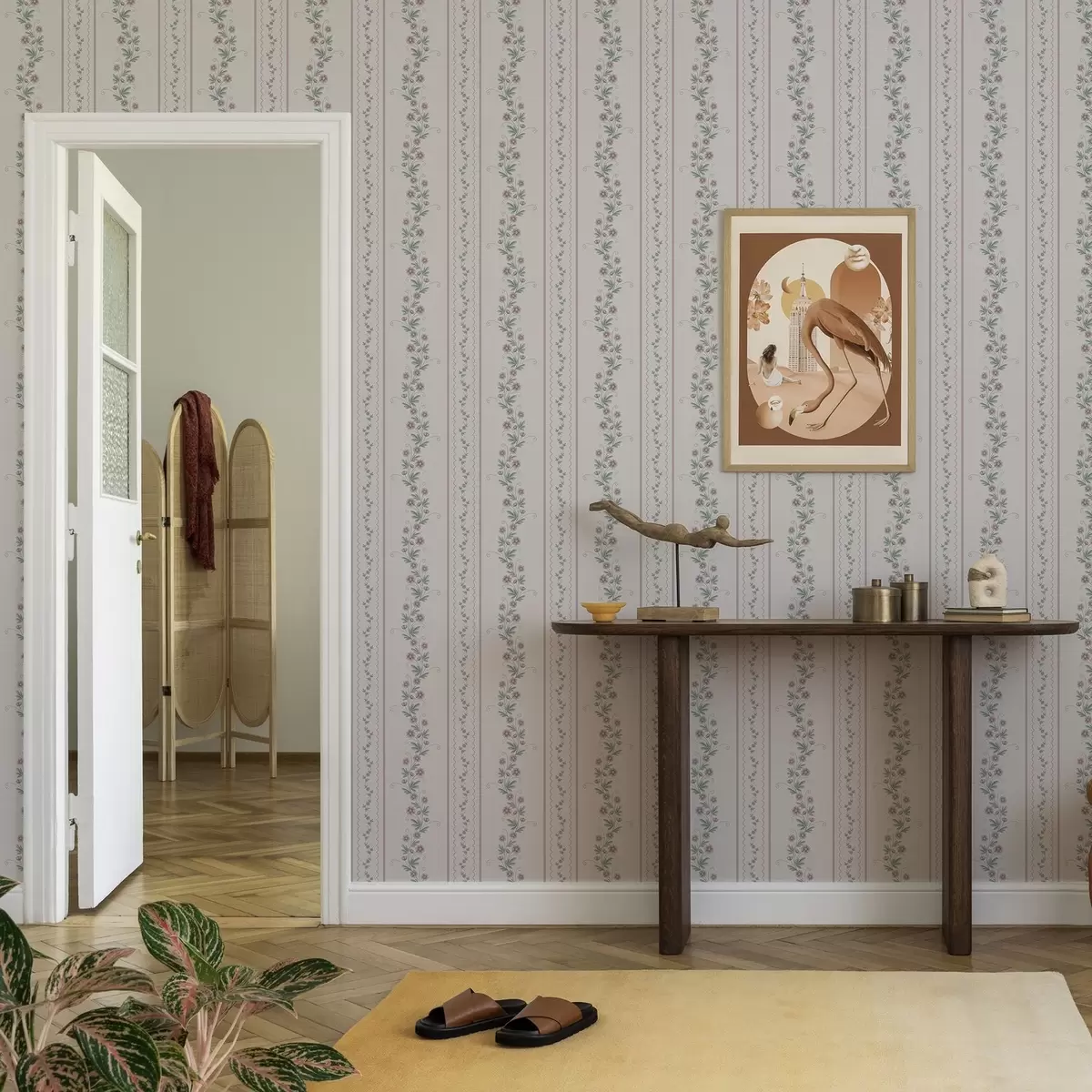 Tapéta Finom csíkok levendula virágokkal, vintage Nr. a00671