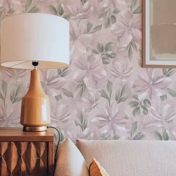 Tapéta Rózsaszín virágok finom levelekkel, puha háttérrel Nr. a00675