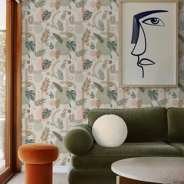 Tapéta Levelek és geometrikus formák nyugodt, meleg árnyalatokban Nr. a00677