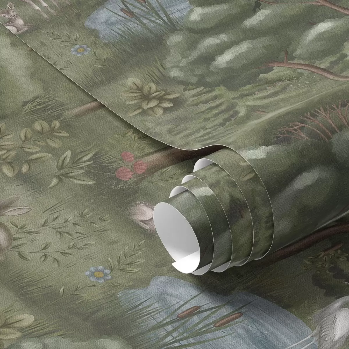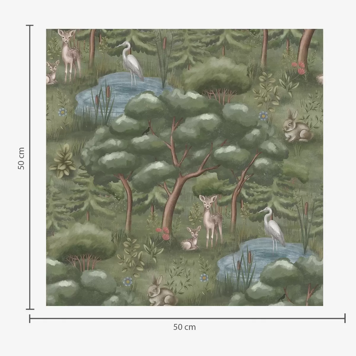 Tapéta Erdő tisztás szarvasokkal, nyulakkal és gémekkel Nr. a00680