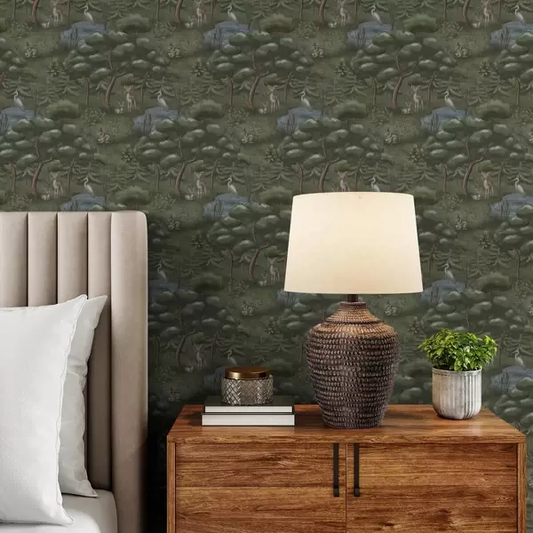 Tapéta Erdő tisztás szarvasokkal, nyulakkal és gémekkel Nr. a00680