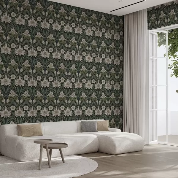 Tapéta Sötét háttér előtt liliomokkal díszített szecessziós kompozíció Nr. a00696