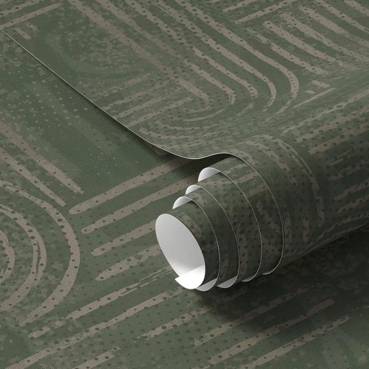 Tapéta Geometrikus mintázat íves elemekkel, zöld színpalettával Nr. a00697