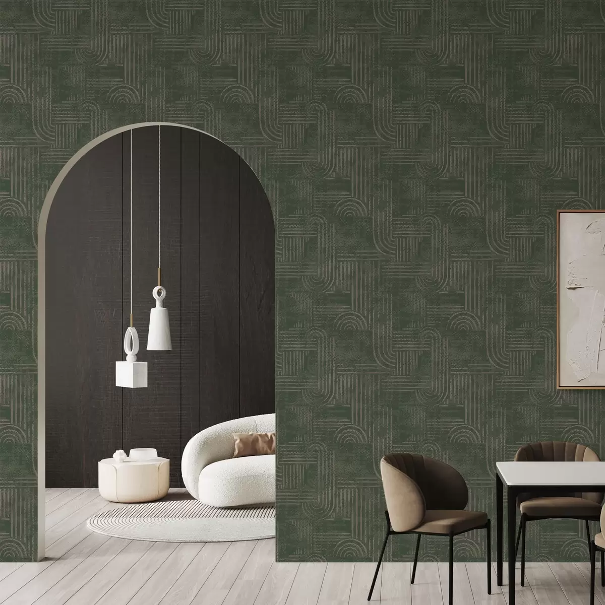 Tapéta Geometrikus mintázat íves elemekkel, zöld színpalettával Nr. a00697