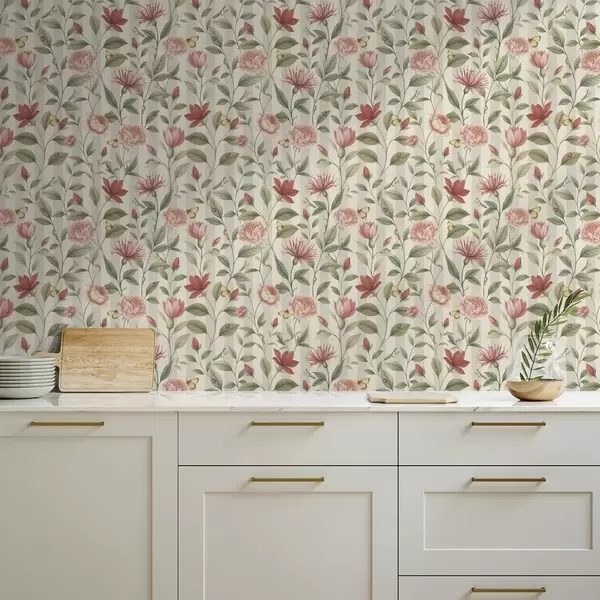 Tapéta Virágszárak pillangókkal világos háttér előtt Nr. a00698