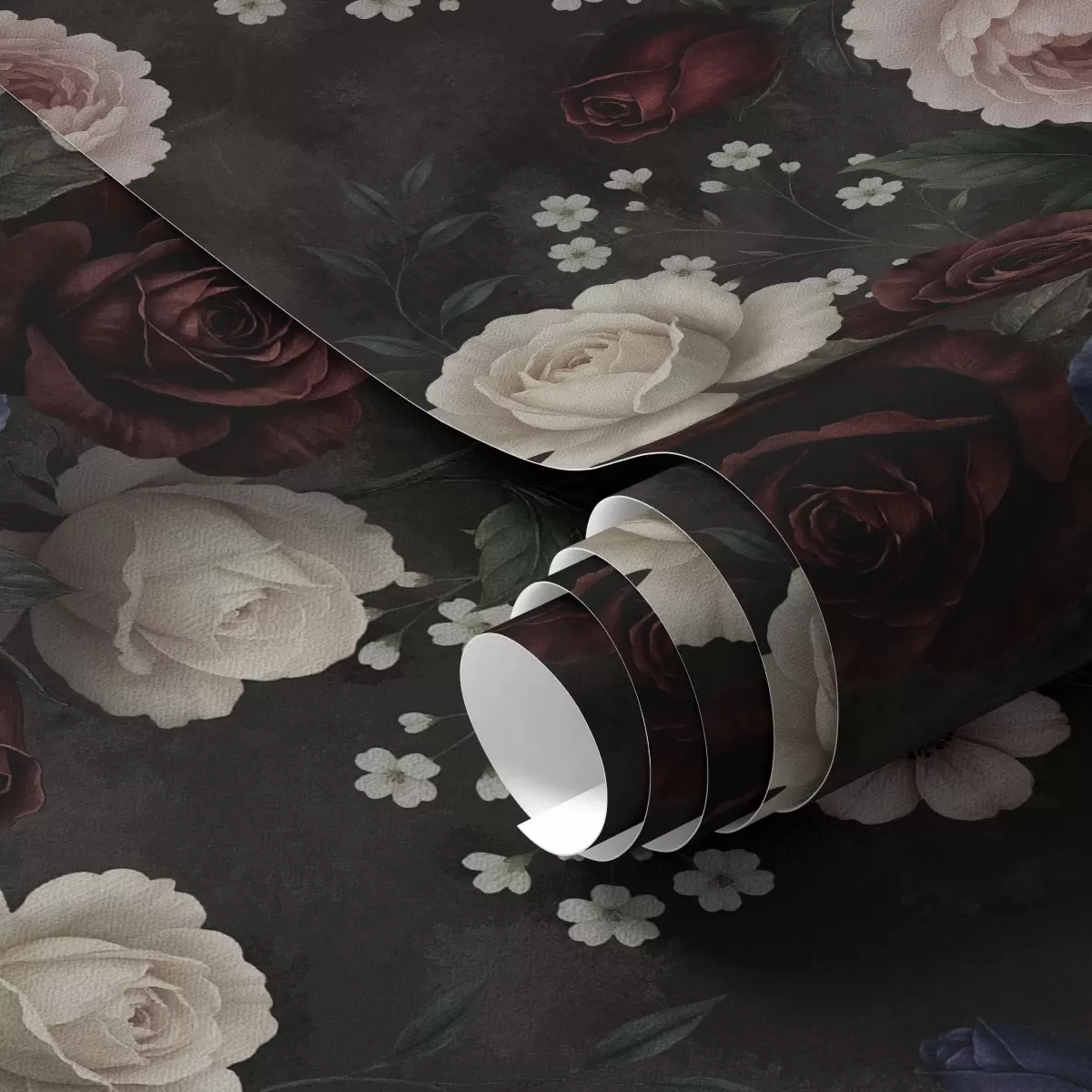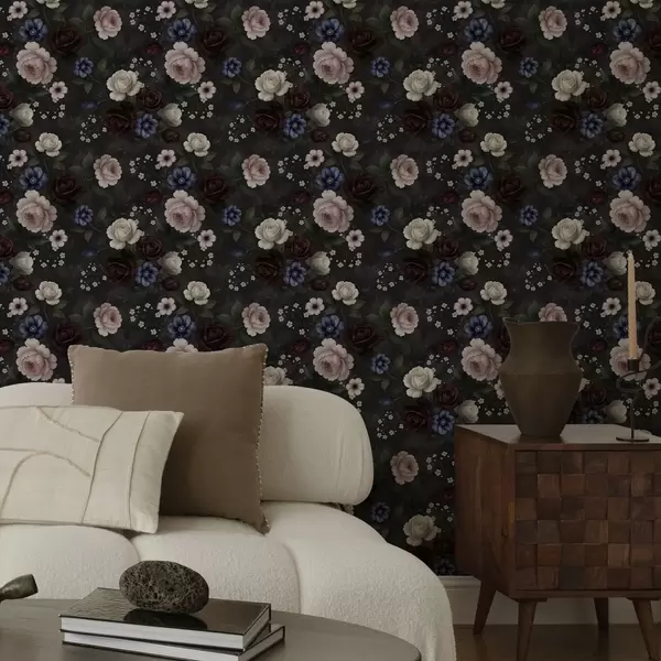 Tapéta Sötét rózsák, szellőrózsák és pünkösdi rózsák mély háttér előtt Nr. a00704