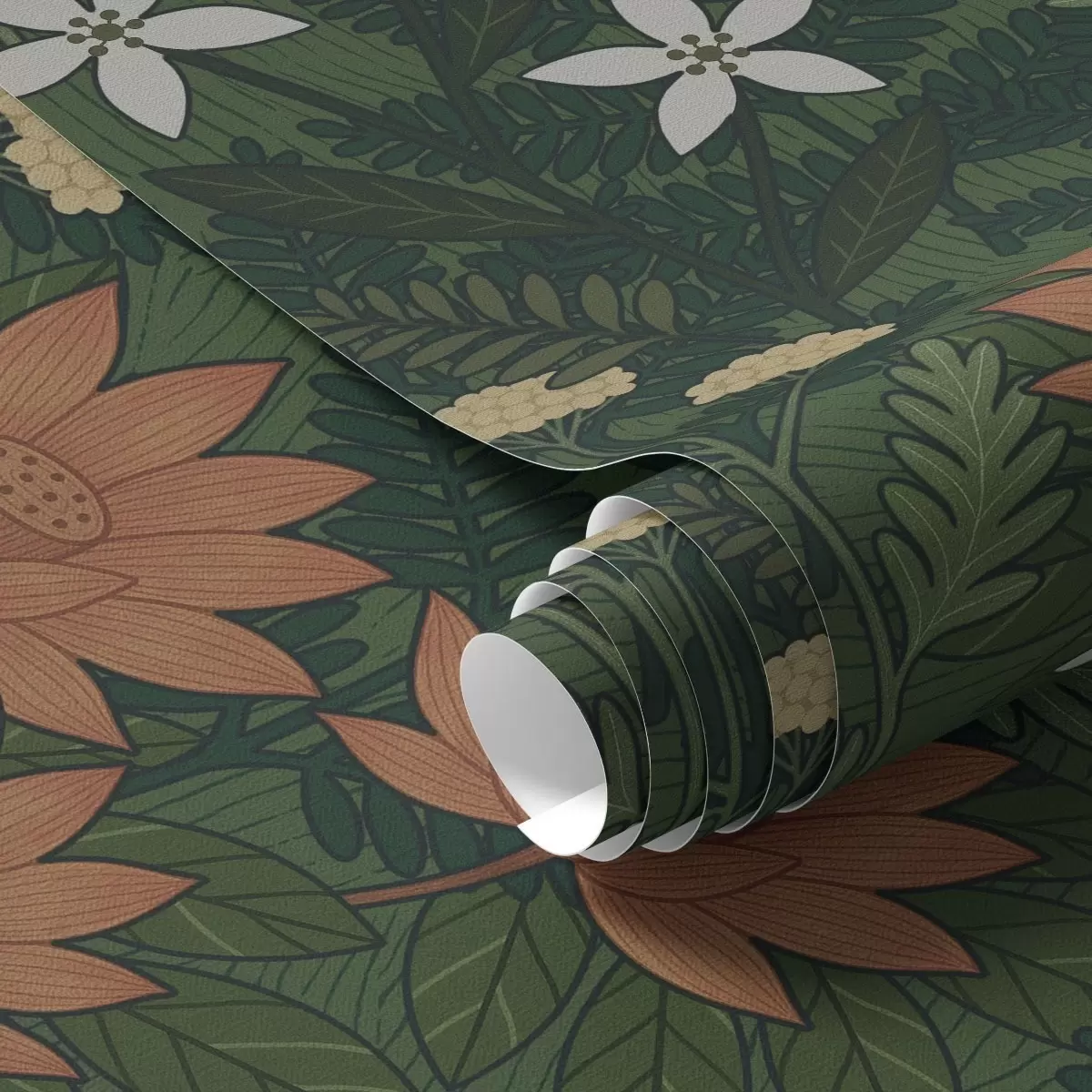 Tapéta Nagy virágok zöld lombok között, dekoratív kompozíció Nr. a00708