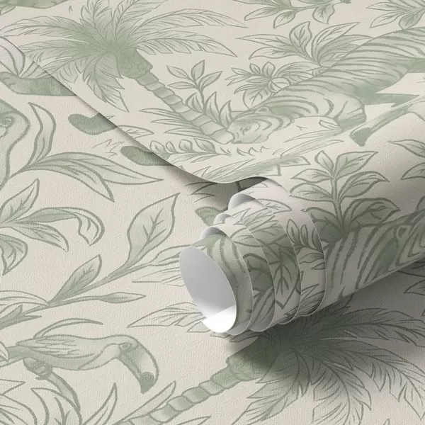 Tapéta Tigrisek és trópusi madarak pálmafák között világos háttér előtt Nr. a00711