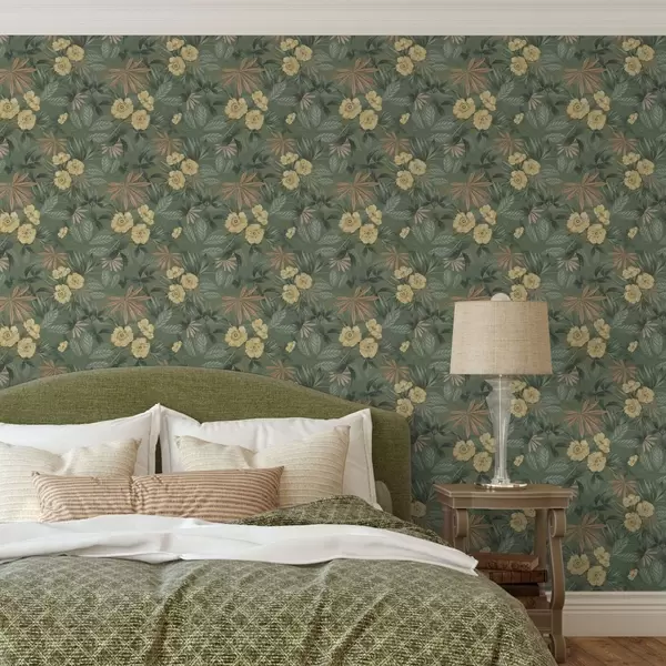 Tapéta Sárga virágok zöld leveles textúra között Nr. a00718