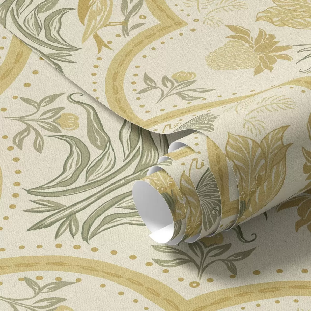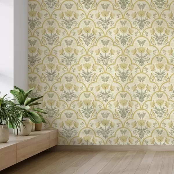 Tapéta Tulipán, madarak és pillangók díszítéssel, okker Nr. a00722