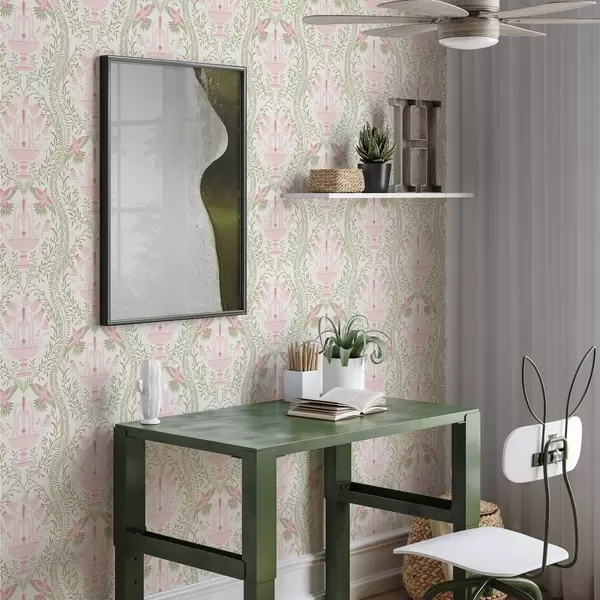 Tapéta Szökőkutak, kolibrik és zöld tekercsek világos háttér előtt Nr. a00723