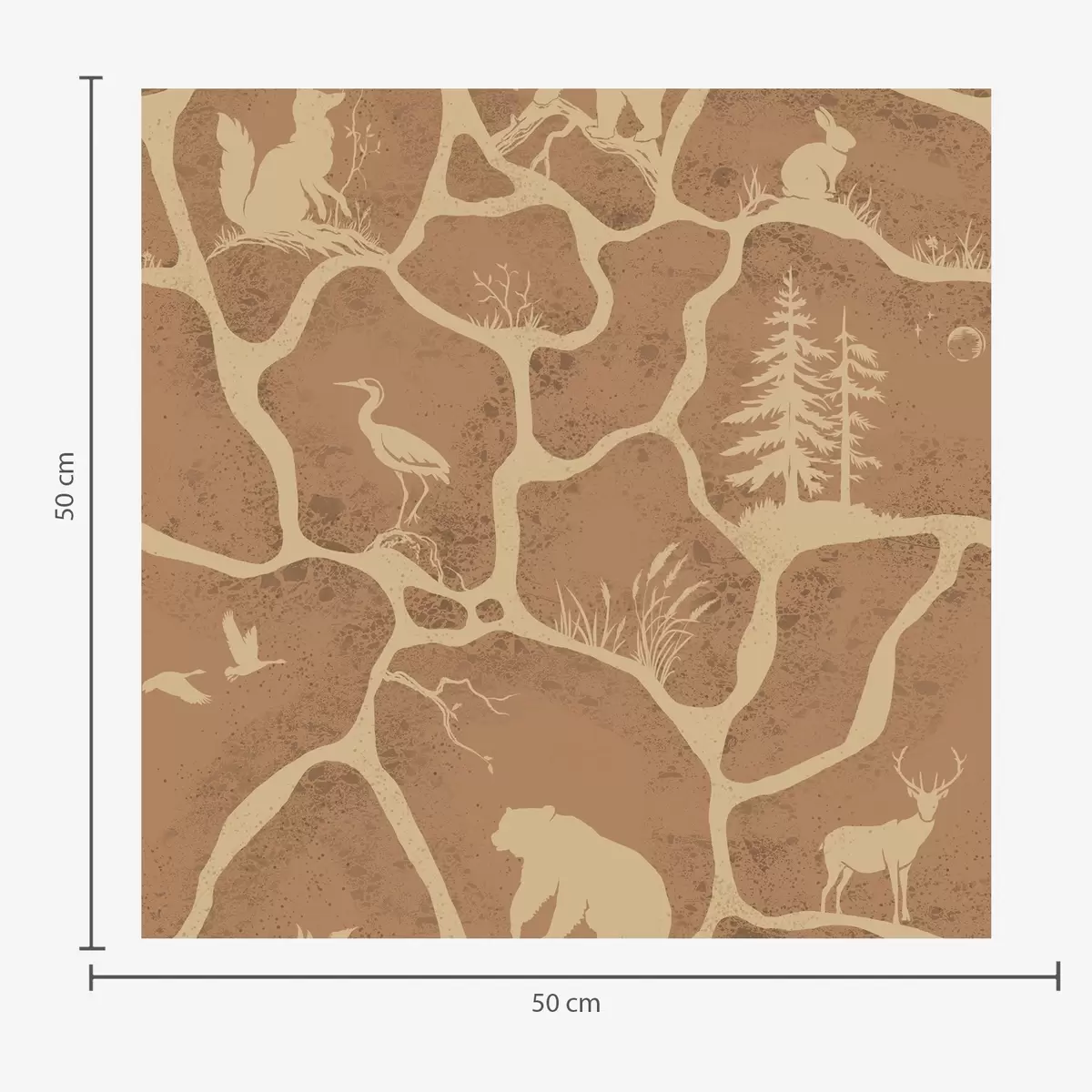 Tapéta Állatok és fák sziluettjei természetes tájban, kő textúrával Nr. a00727