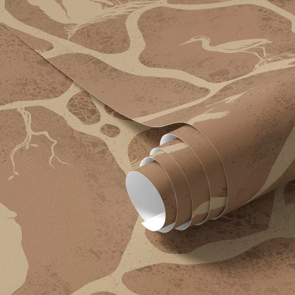 Tapéta Állatok és fák sziluettjei természetes tájban, kő textúrával Nr. a00727