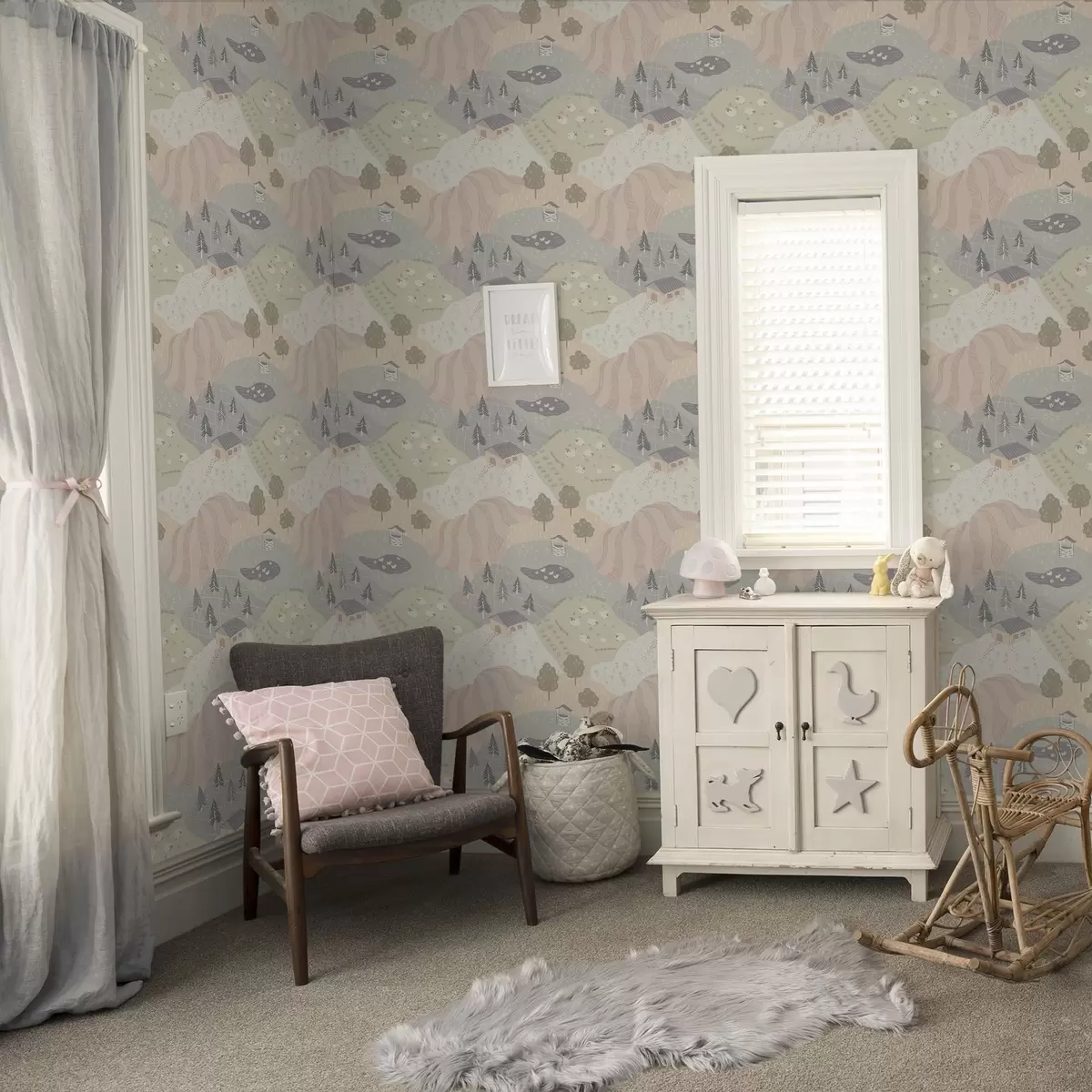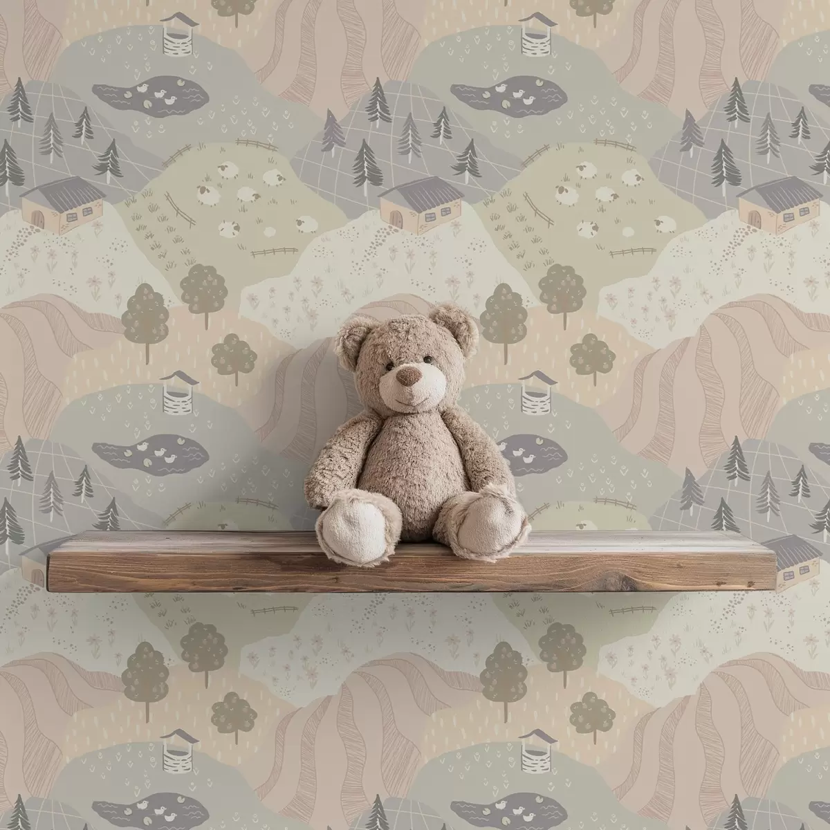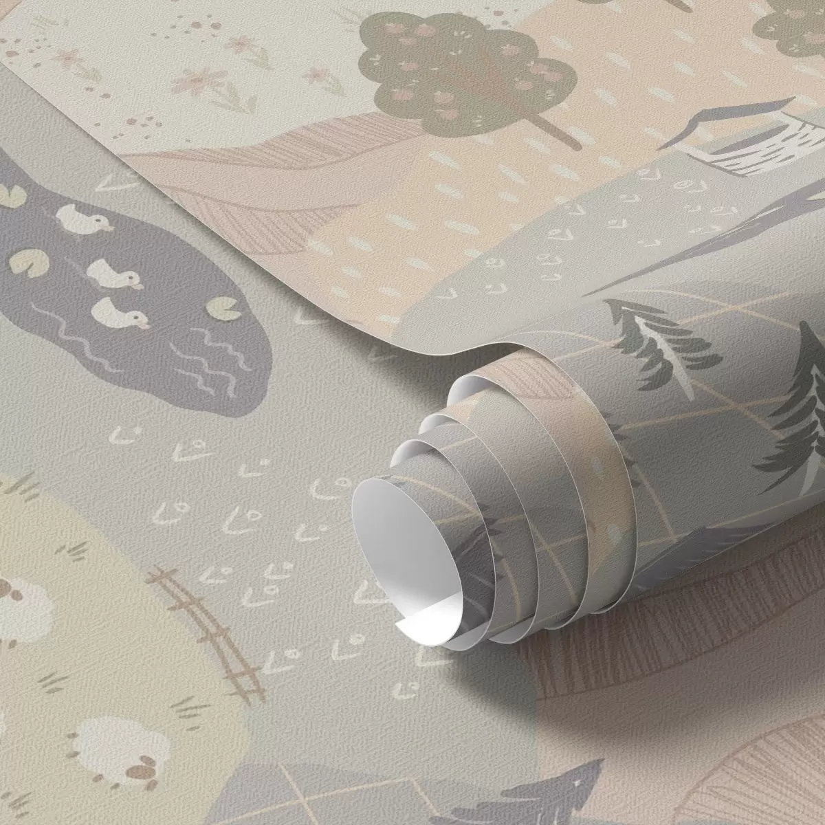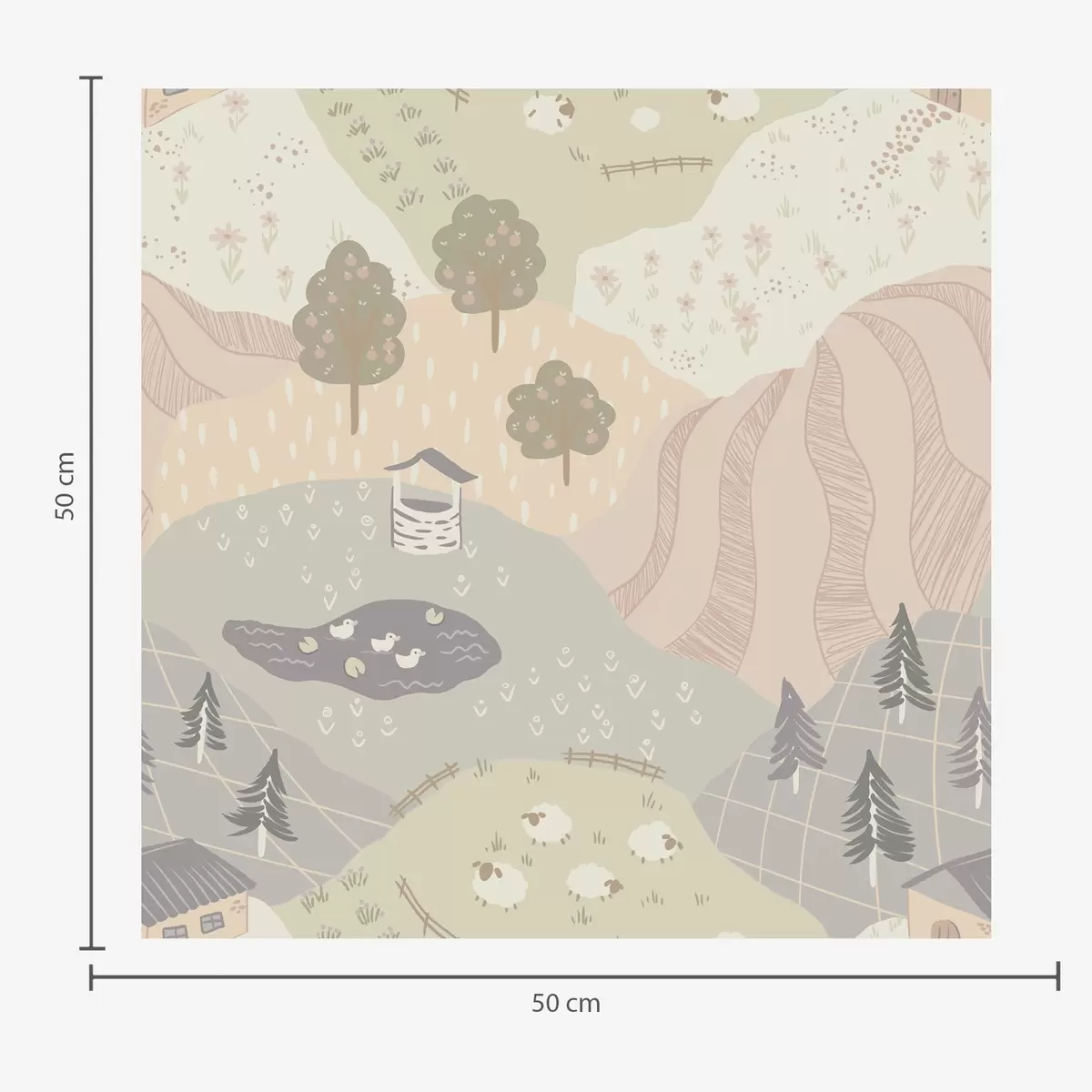 Tapéta Mesebeli vidék fákkal, libákkal és juhokkal Nr. a00728