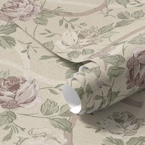 Tapéta Rózsák zöld levelekkel meleg bézs alapon Nr. a00729