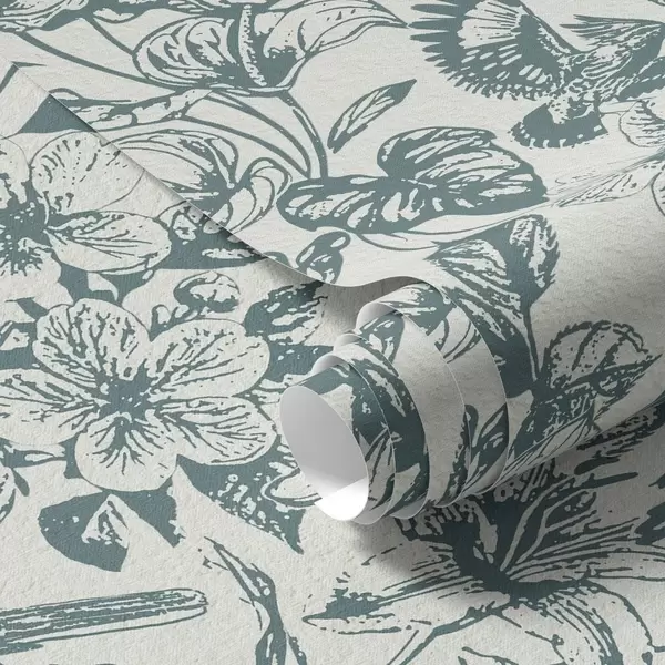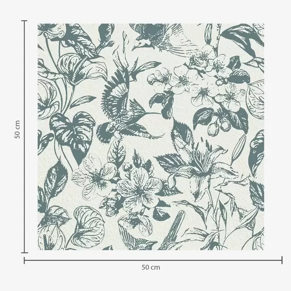 Tapéta Fekete-fehér virágdísz madarakkal Nr. a00737